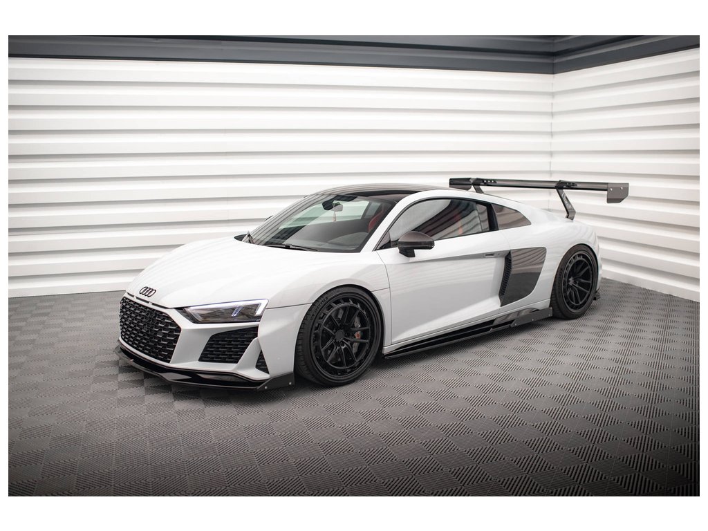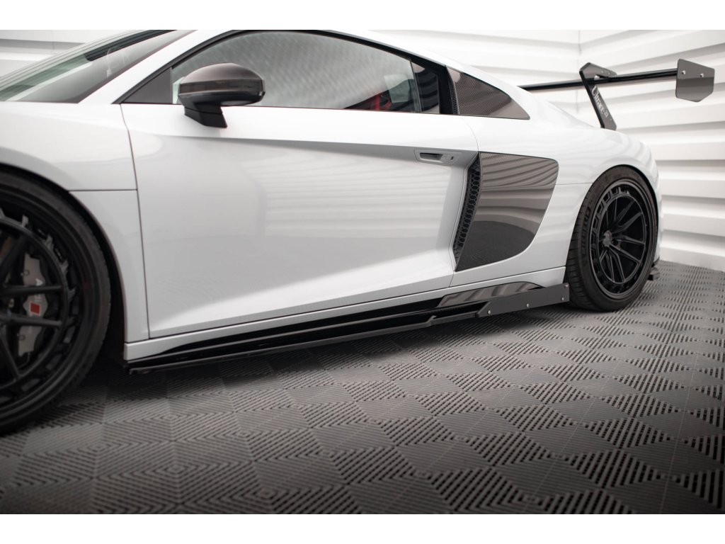 Maxton Design difuzory pod boční prahy s křidélky ver.2 pro vozidlo Audi R8 Mk2 Facelift . Povrchová úprava spoileru černý lesklý plast ABS.