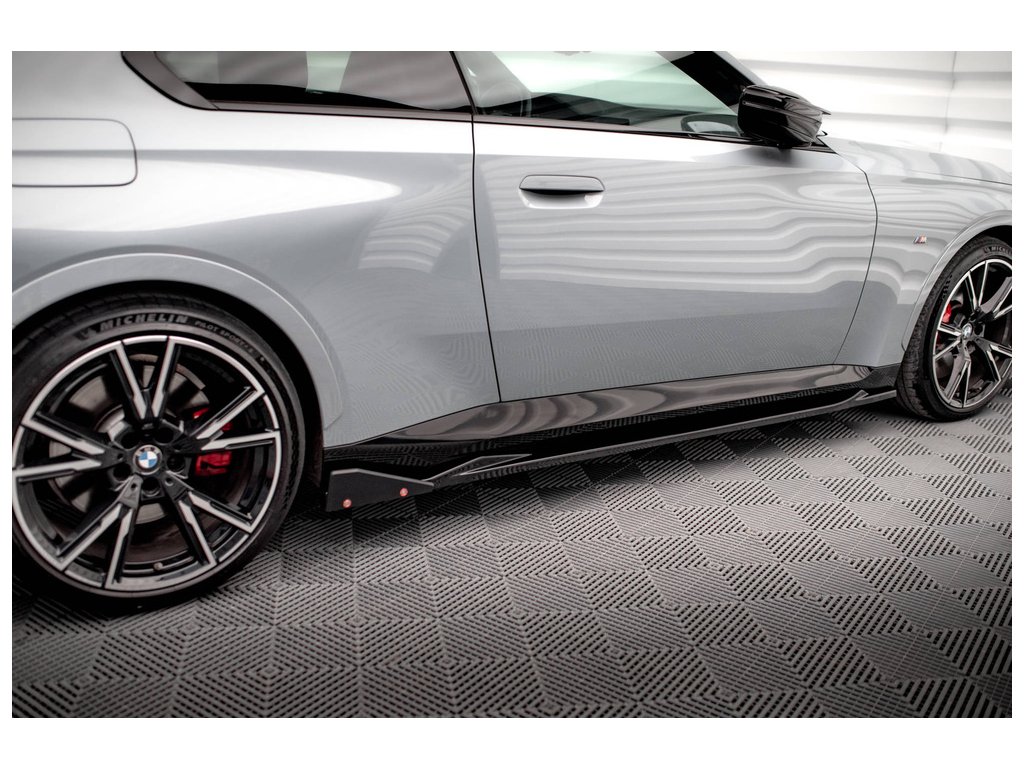 Side Skirts Diffusers V.2 + Flaps BMW 2 Coupe M-Pack / M240i G42, povrchová úprava černý lesklý plast ABS.