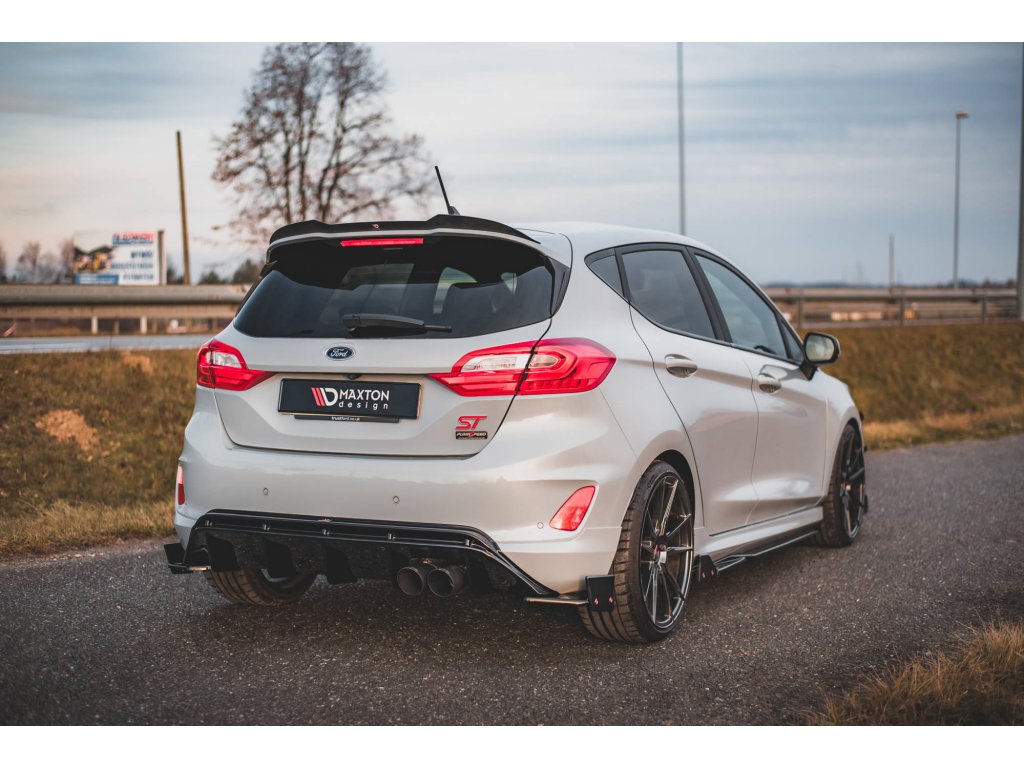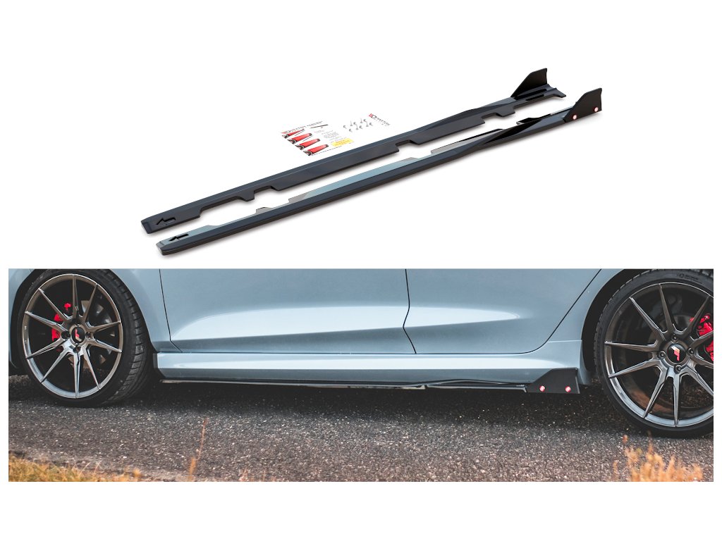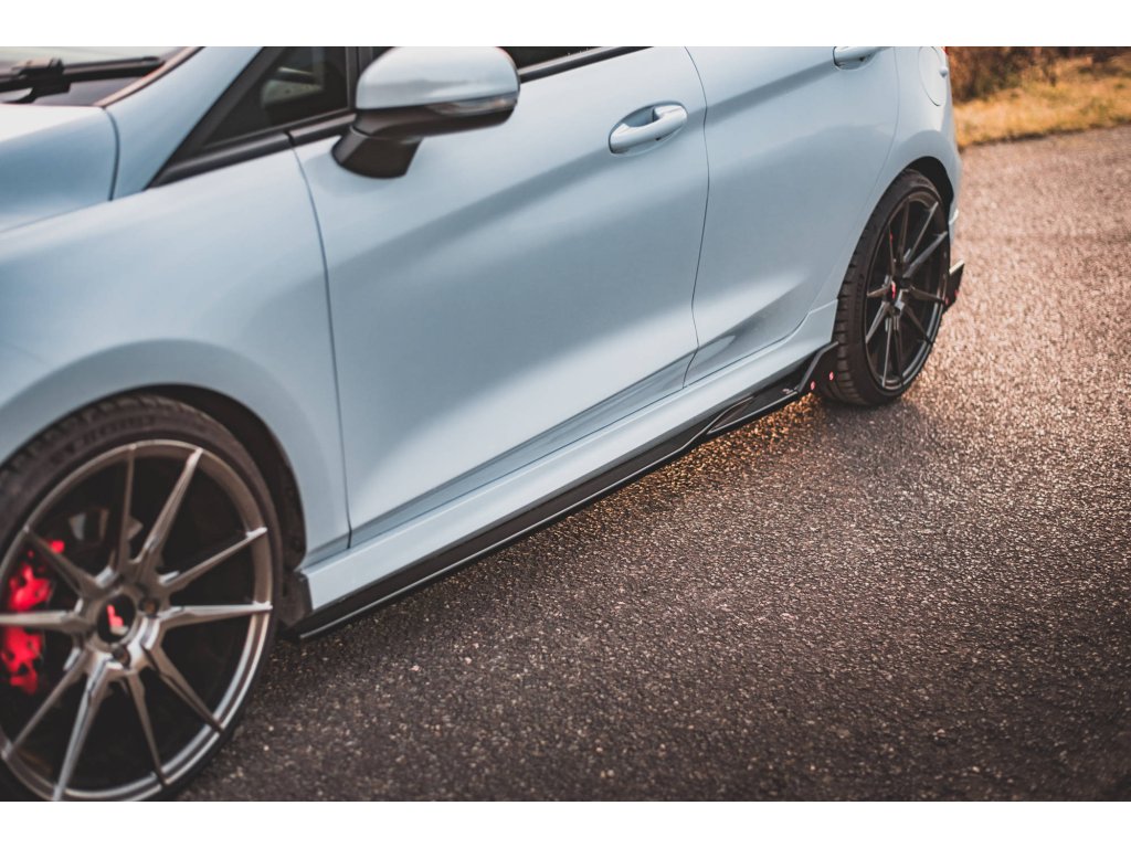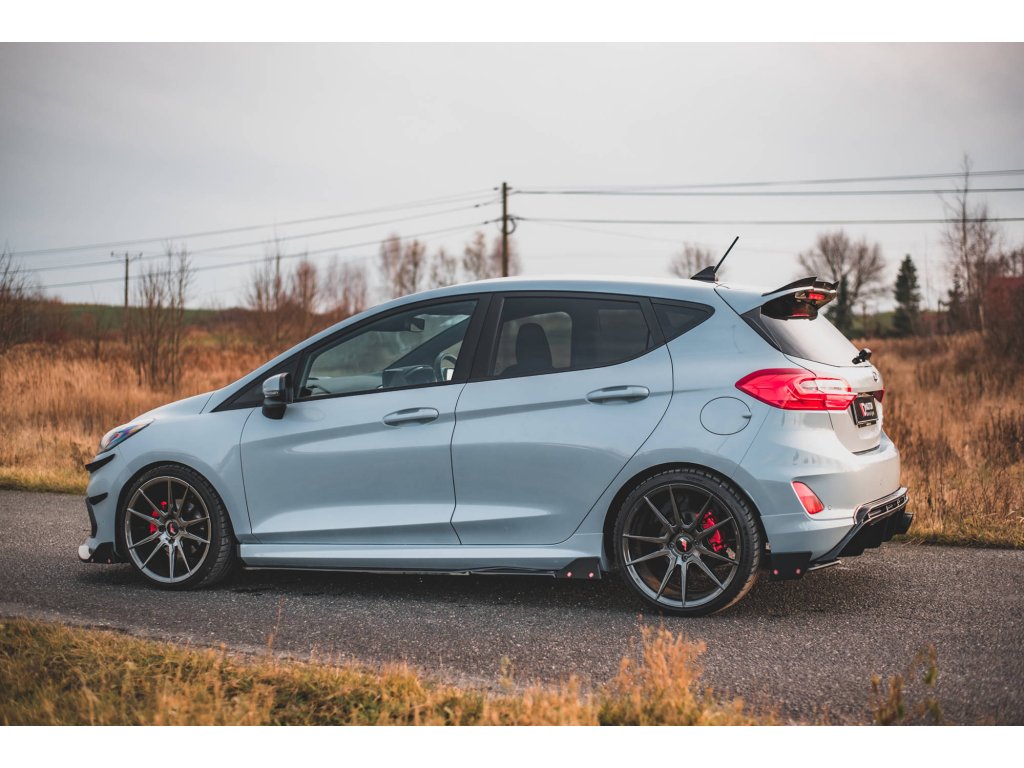 Maxton Design difuzory pod boční prahy s křidélky ver.2 pro vozidlo Ford Fiesta ST Mk8 . Povrchová úprava spoileru carbon-Look.