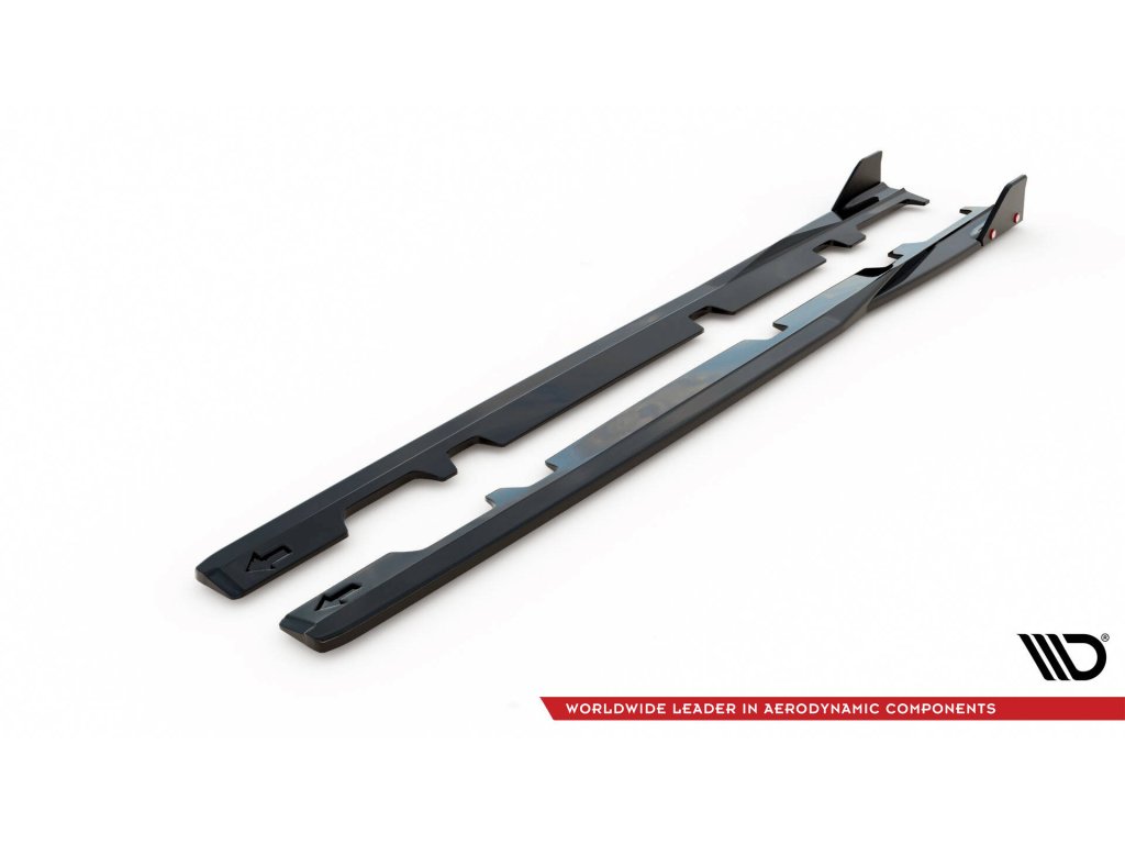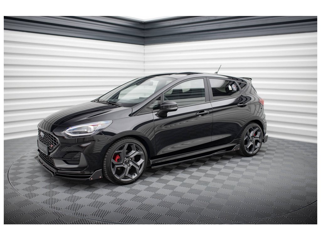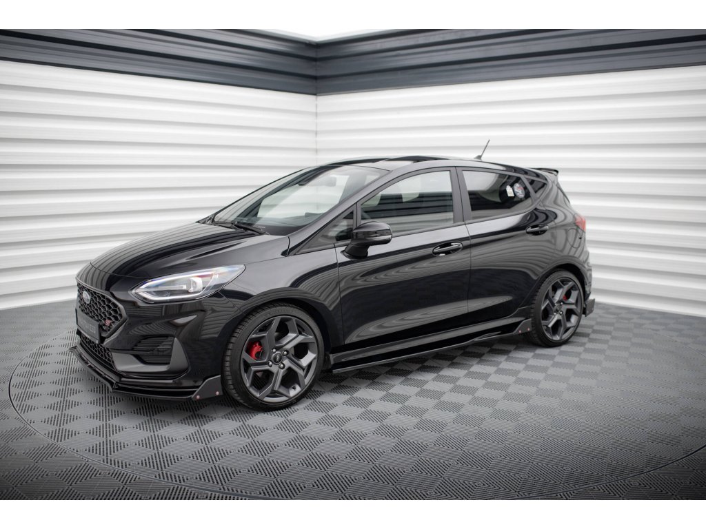 Maxton Design difuzory pod boční prahy s křidélky ver.2 pro vozidlo Ford Fiesta ST Mk8 . Povrchová úprava spoileru černý lesklý plast ABS.