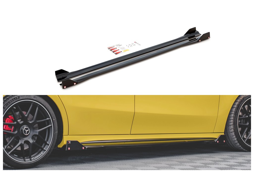 Maxton Design difuzory pod boční prahy s křidélky ver.2 pro Mercedes třída A W177 45 AMG, carbon-Look