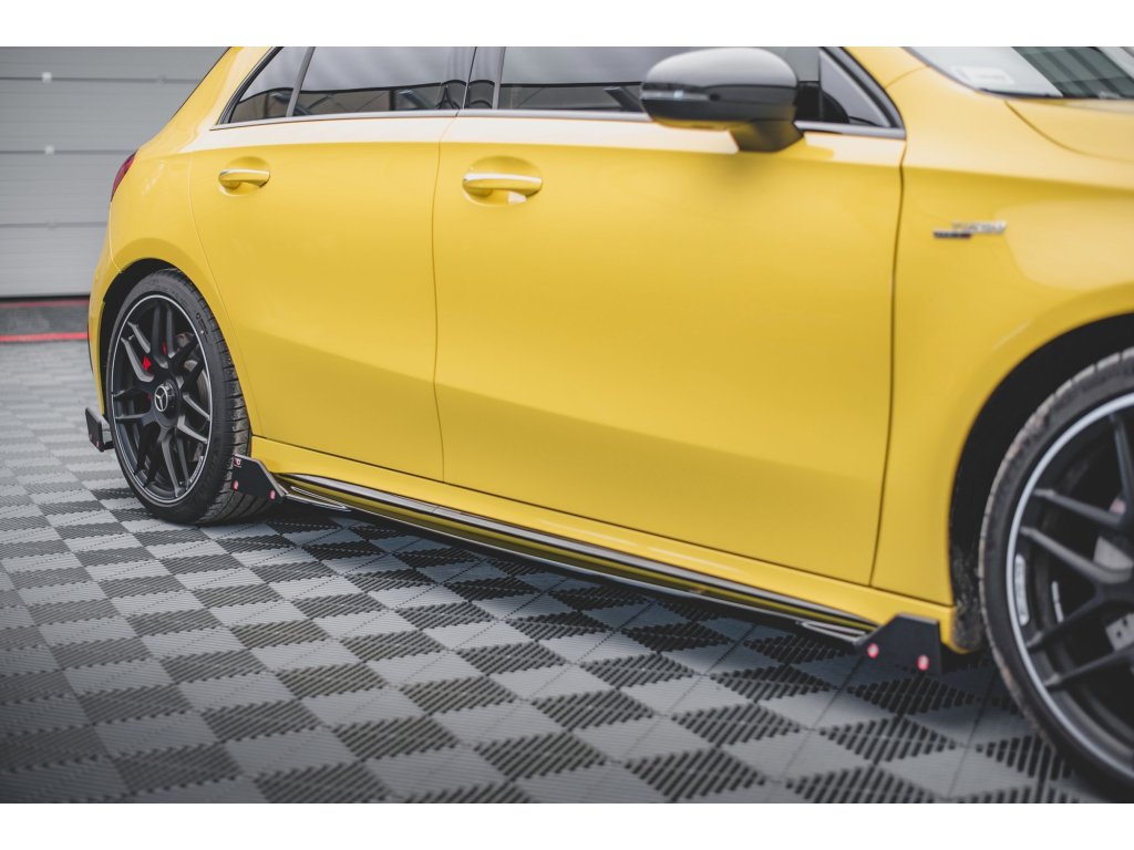 Maxton Design difuzory pod boční prahy s křidélky ver.2 pro vozidlo Mercedes třída A W177 45 AMG . Povrchová úprava spoileru carbon-Look.