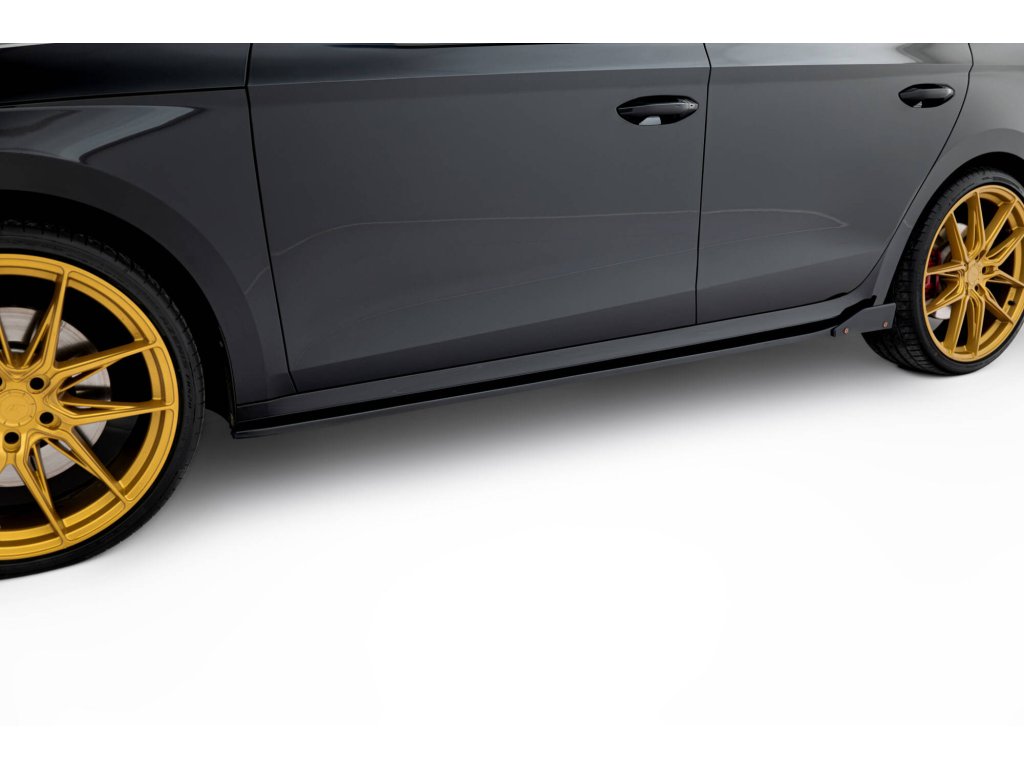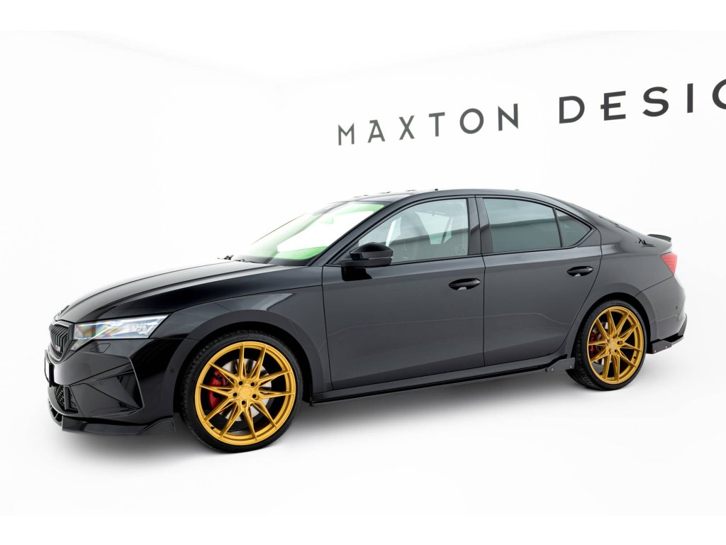 Maxton Design difuzory pod boční prahy s křidélky ver.2 pro vozidlo Škoda Octavia RS Mk4 . Povrchová úprava spoileru černý lesklý plast ABS.