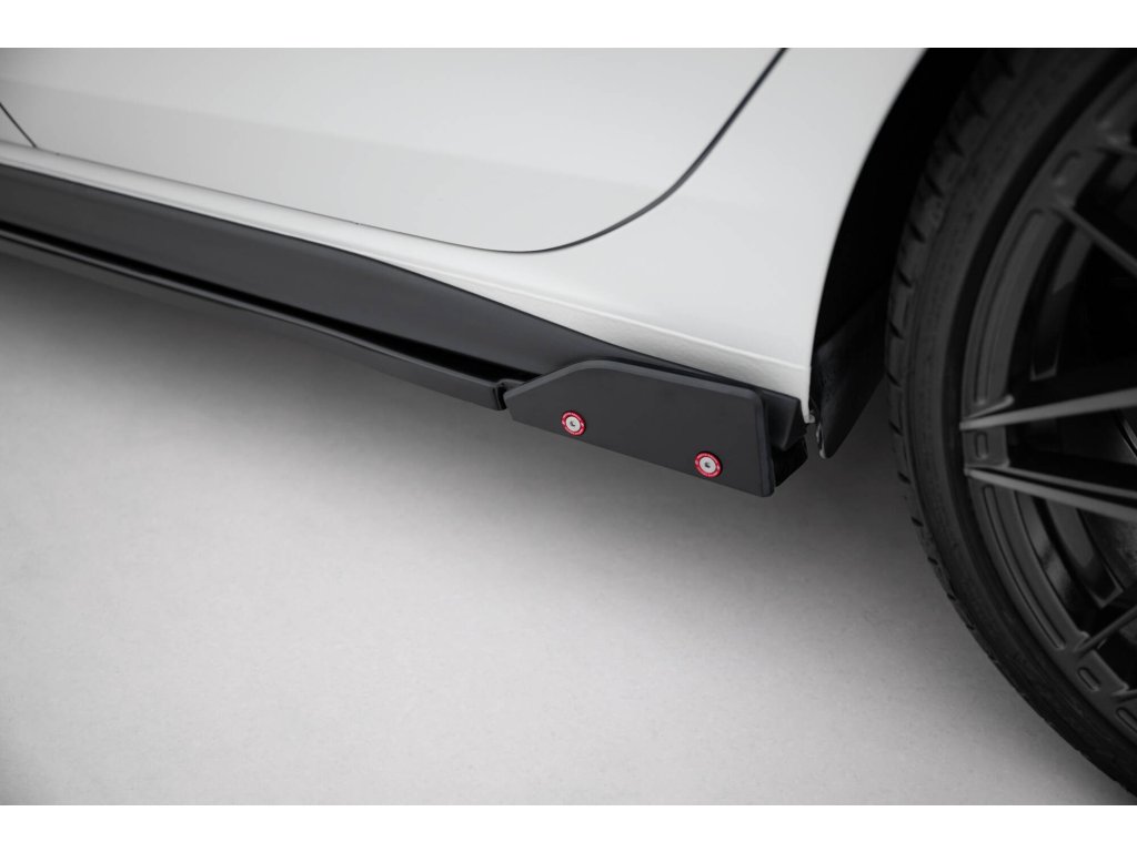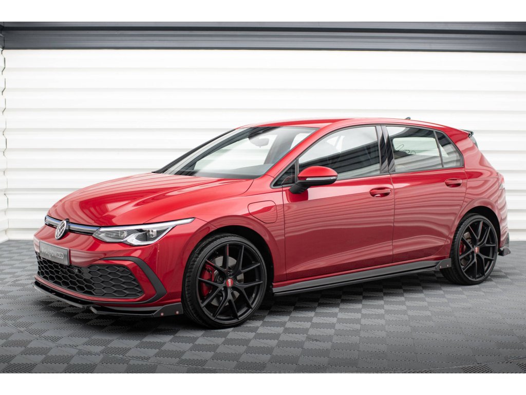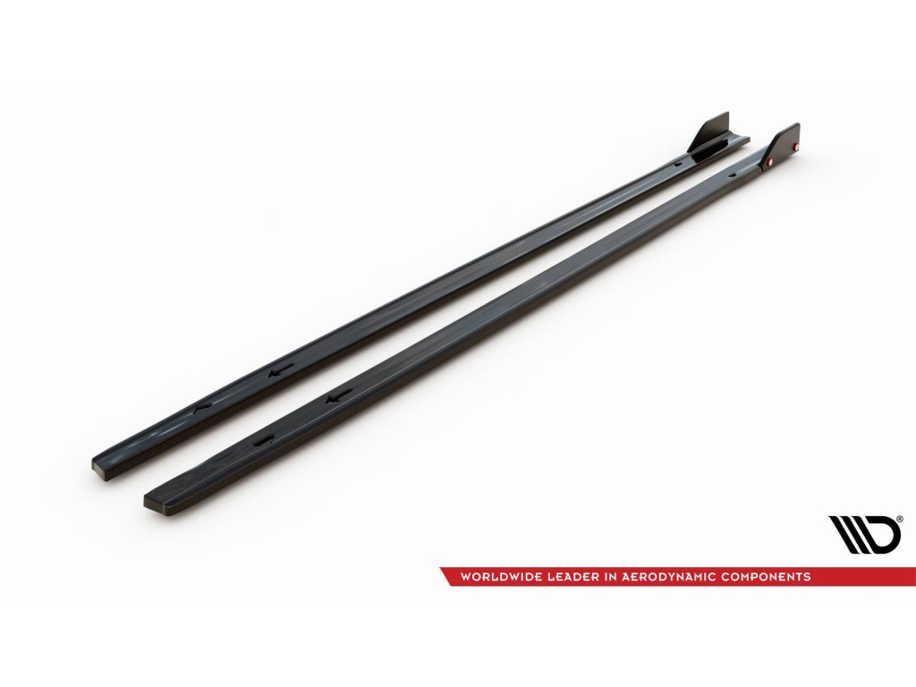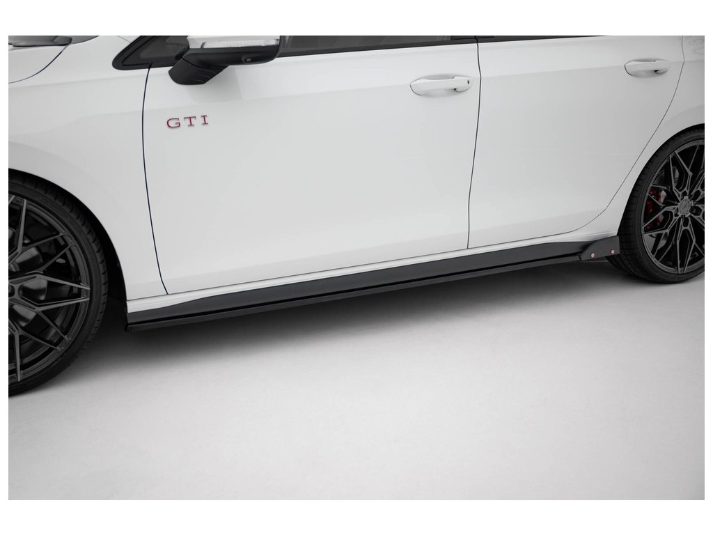 Maxton Design difuzory pod boční prahy s křidélky ver.2 pro vozidlo Volkswagen Golf GTI Mk8 . Povrchová úprava spoileru černý lesklý plast ABS.