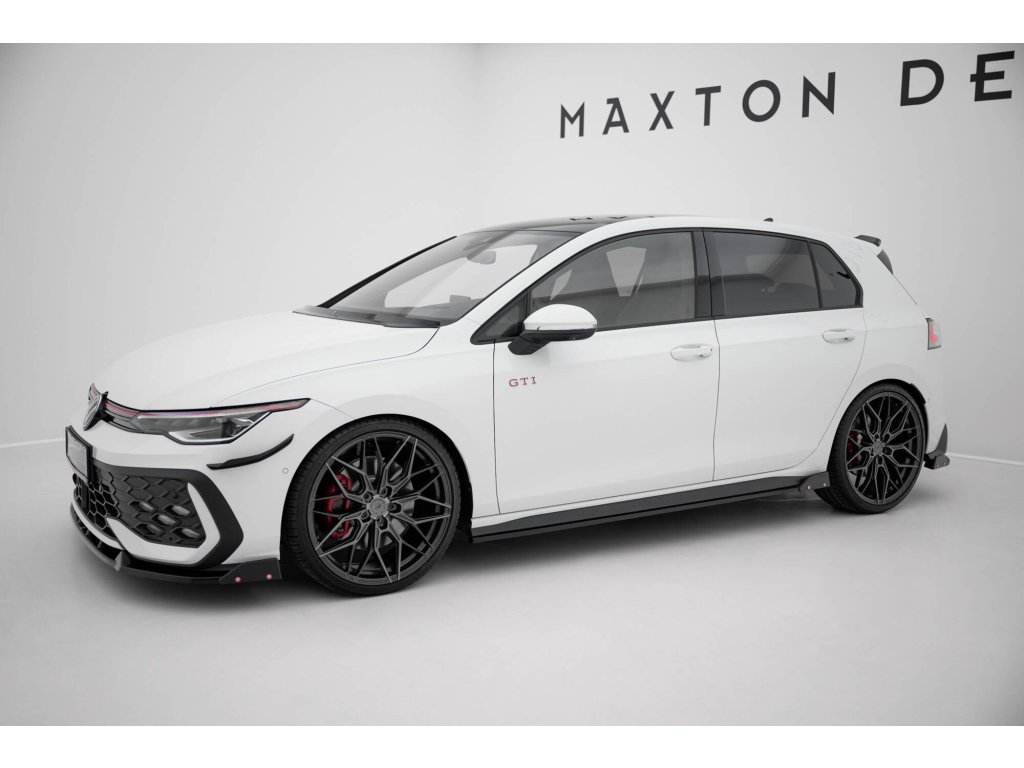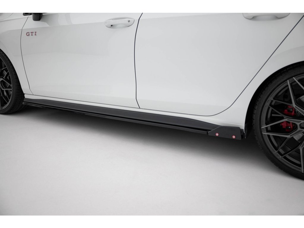 Maxton Design difuzory pod boční prahy s křidélky ver.2 pro Volkswagen Golf GTI Mk8, černý lesklý plast ABS