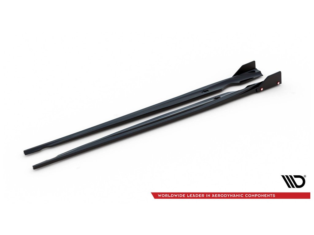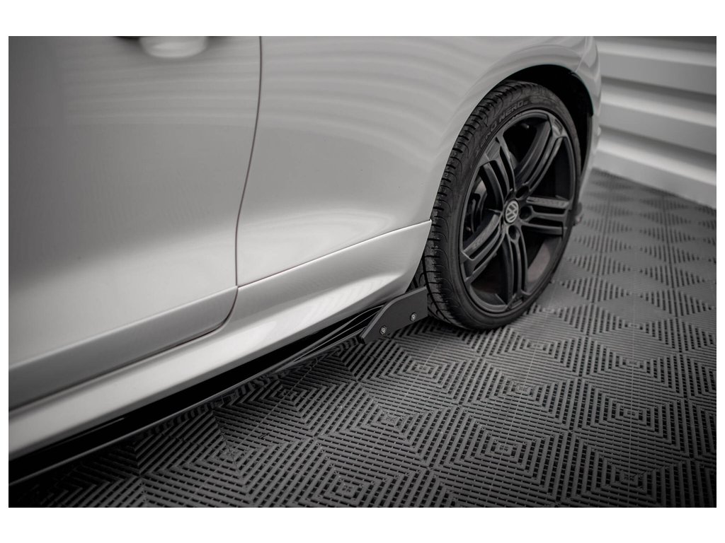 Maxton Design difuzory pod boční prahy s křidélky ver.2 pro vozidlo Volkswagen Scirocco R Mk3 . Povrchová úprava spoileru černý lesklý plast ABS.
