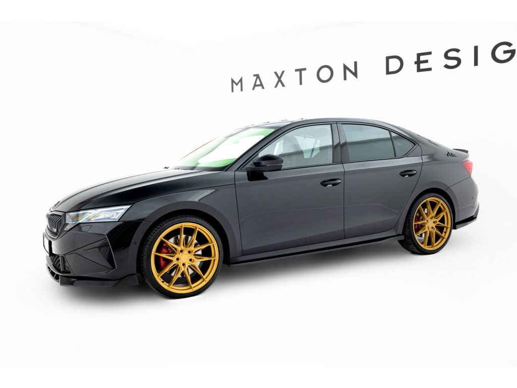 Maxton Design difuzory pod boční prahy s křidélky ver.3 pro vozidlo Škoda Octavia RS Mk4 . Povrchová úprava spoileru černý lesklý plast ABS.