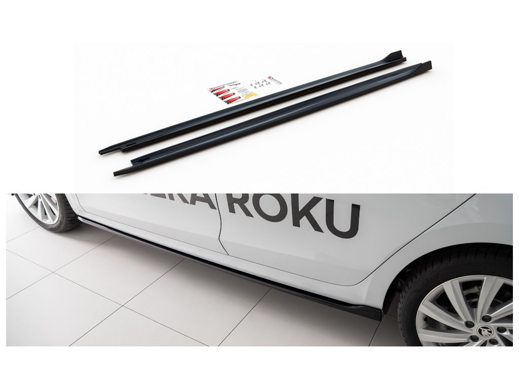 Maxton Design difuzory pod boční prahy ver.1 pro vozidlo Škoda Octavia Mk4 . Povrchová úprava spoileru carbon-Look.