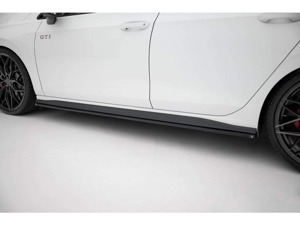 Maxton Design difuzory pod boční prahy ver.1 pro Volkswagen Golf GTI Mk8, černý lesklý plast ABS