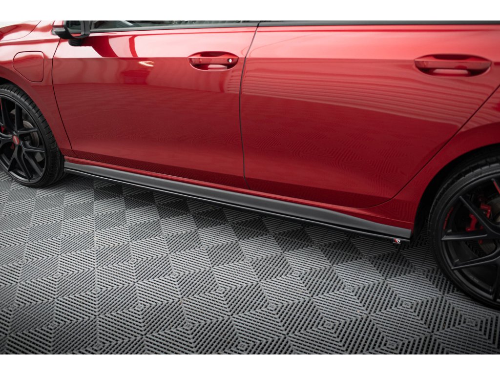 Maxton Design difuzory pod boční prahy ver.1 pro vozidlo Volkswagen Golf GTI Mk8 . Povrchová úprava spoileru černý lesklý plast ABS.