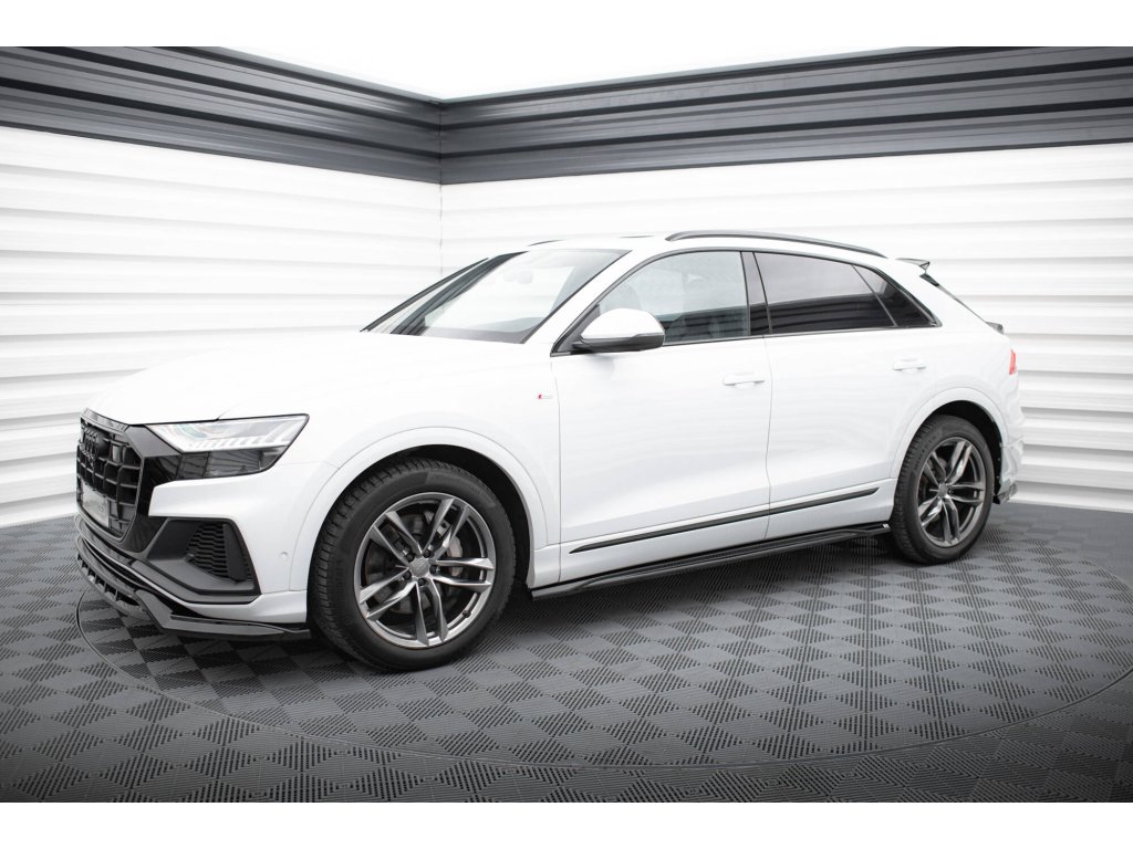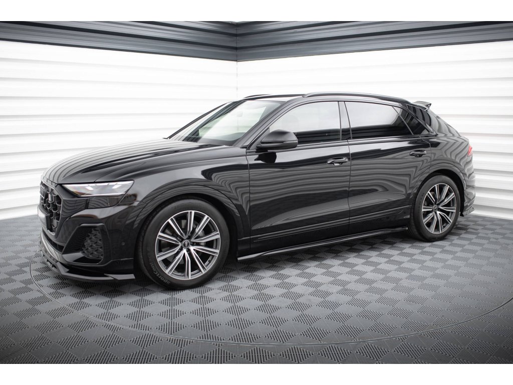 Maxton Design difuzory pod boční prahy ver.2 pro vozidlo Audi Q8 Mk 1, Mk 1 FL . Povrchová úprava spoileru černý lesklý plast ABS.