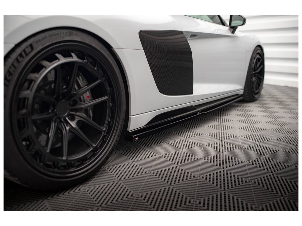 Maxton Design difuzory pod boční prahy ver.2 pro vozidlo Audi R8 Mk2 Facelift . Povrchová úprava spoileru černý lesklý plast ABS.