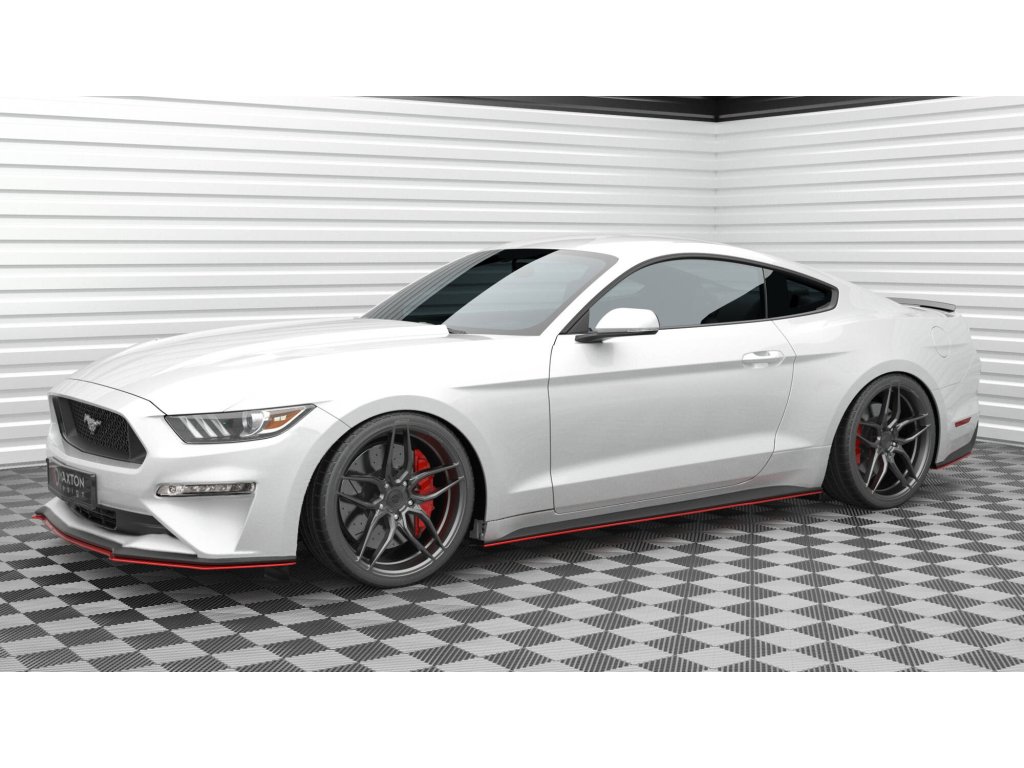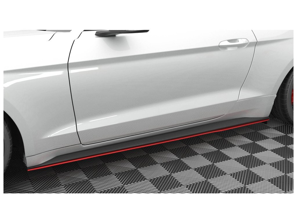 Maxton Design difuzory pod boční prahy ver.2 pro vozidlo Ford Mustang Mk 6 Facelift . Povrchová úprava spoileru černý lesklý plast ABS.