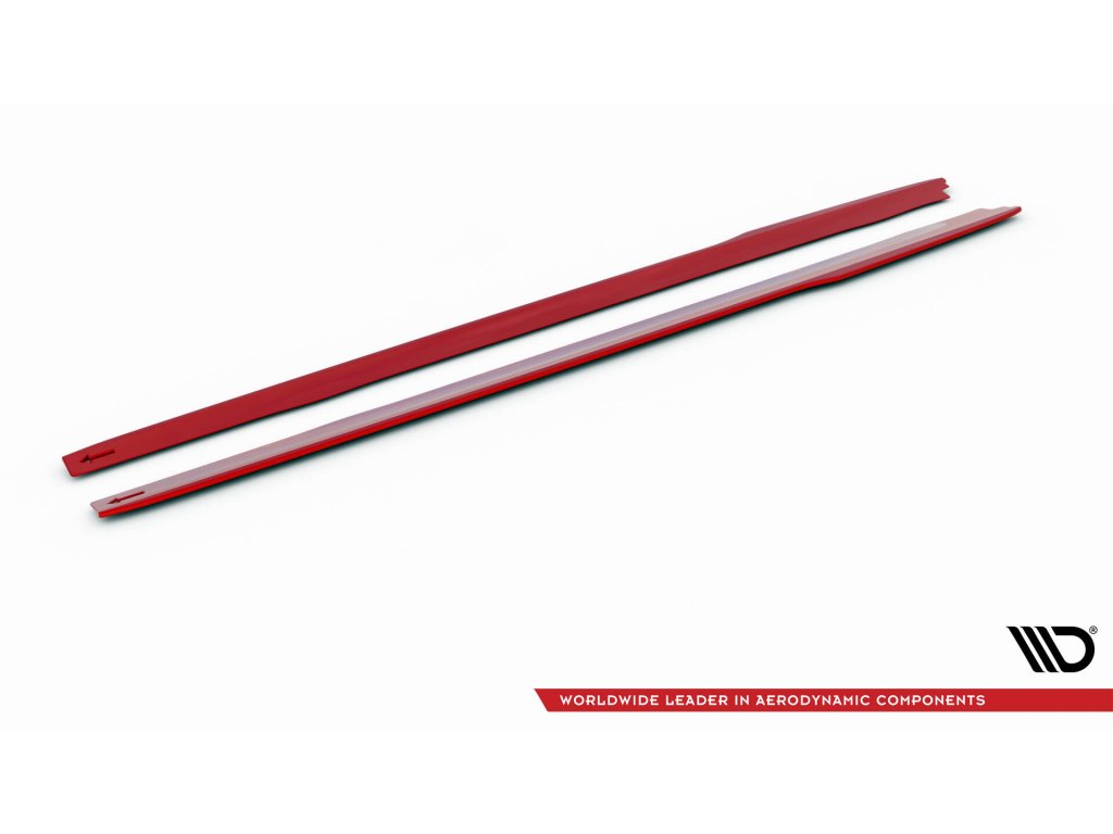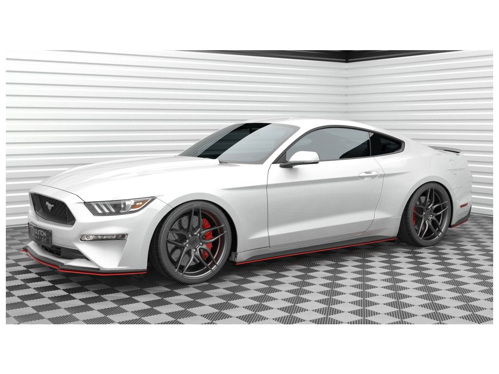 Maxton Design difuzory pod boční prahy ver.2 pro vozidlo Ford Mustang Mk 6 Facelift . Povrchová úprava spoileru červený lesklý plast ABS.