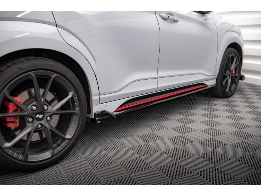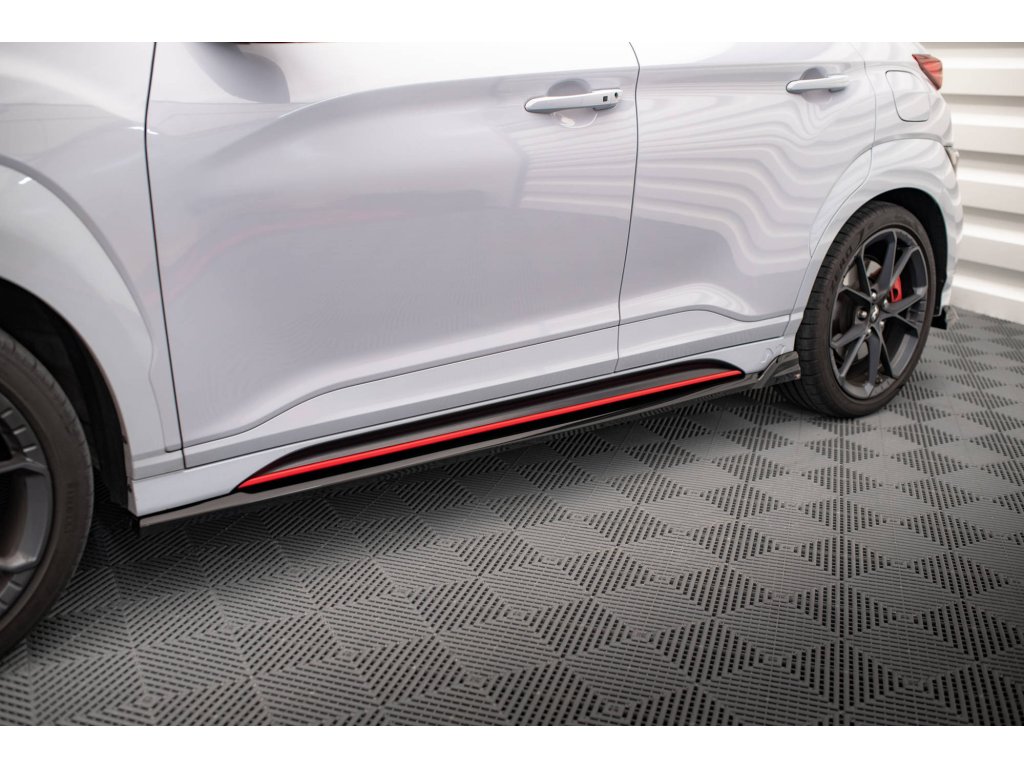 Maxton Design difuzory pod boční prahy ver.2 pro vozidlo Hyundai Kona N Mk1 . Povrchová úprava spoileru černý lesklý plast ABS.