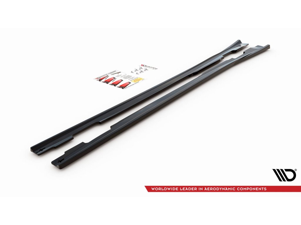 Maxton Design difuzory pod boční prahy ver.2 pro vozidlo Mercedes třída A W176/Standard . Povrchová úprava spoileru černý lesklý plast ABS.