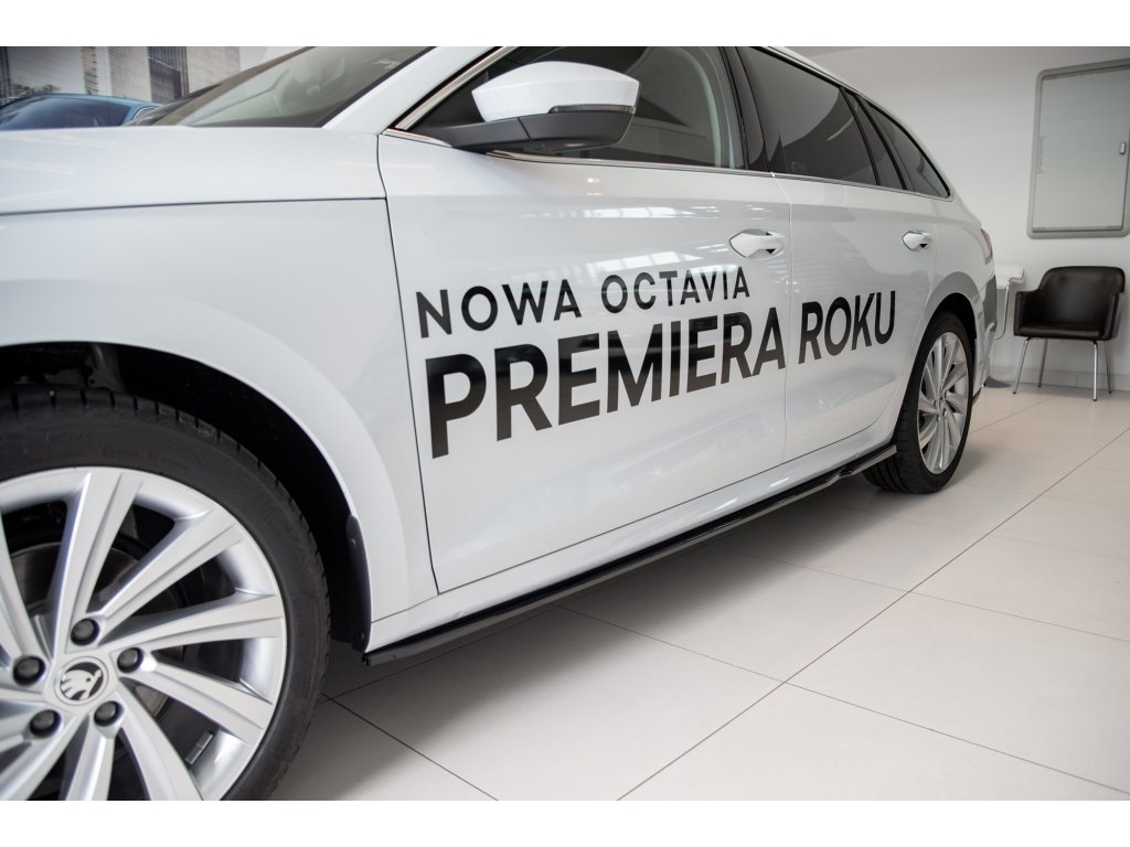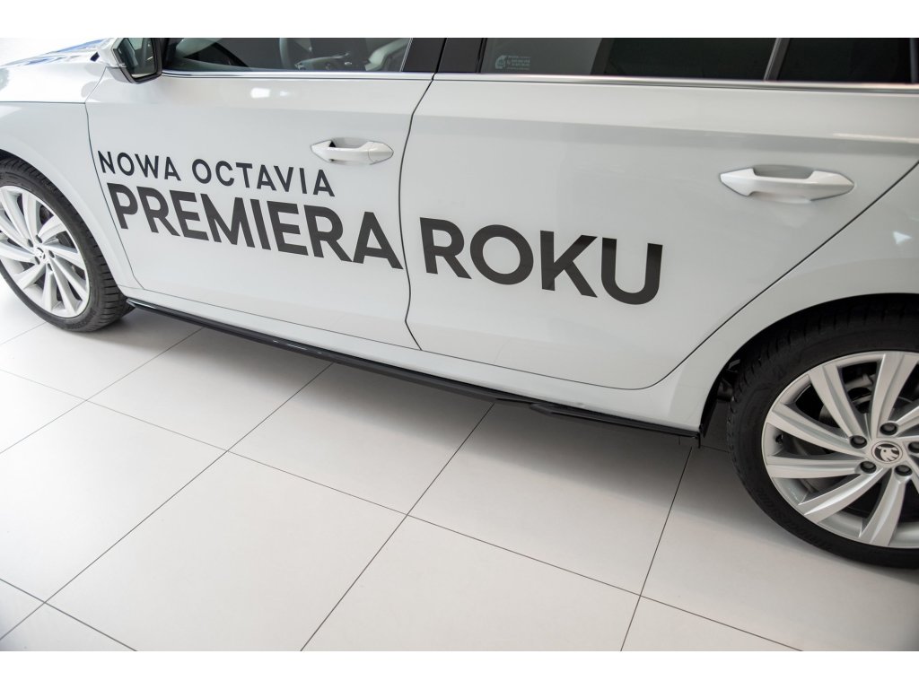 Difuzory bočních prahů V.2 Skoda Octavia Mk4, povrchová úprava černý lesklý plast ABS.