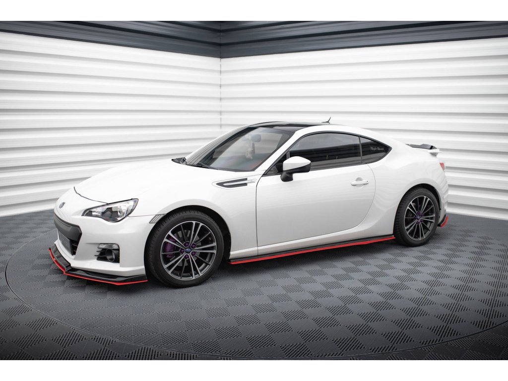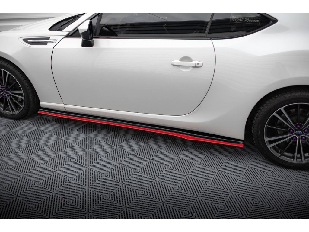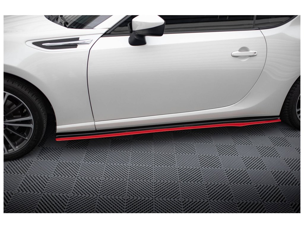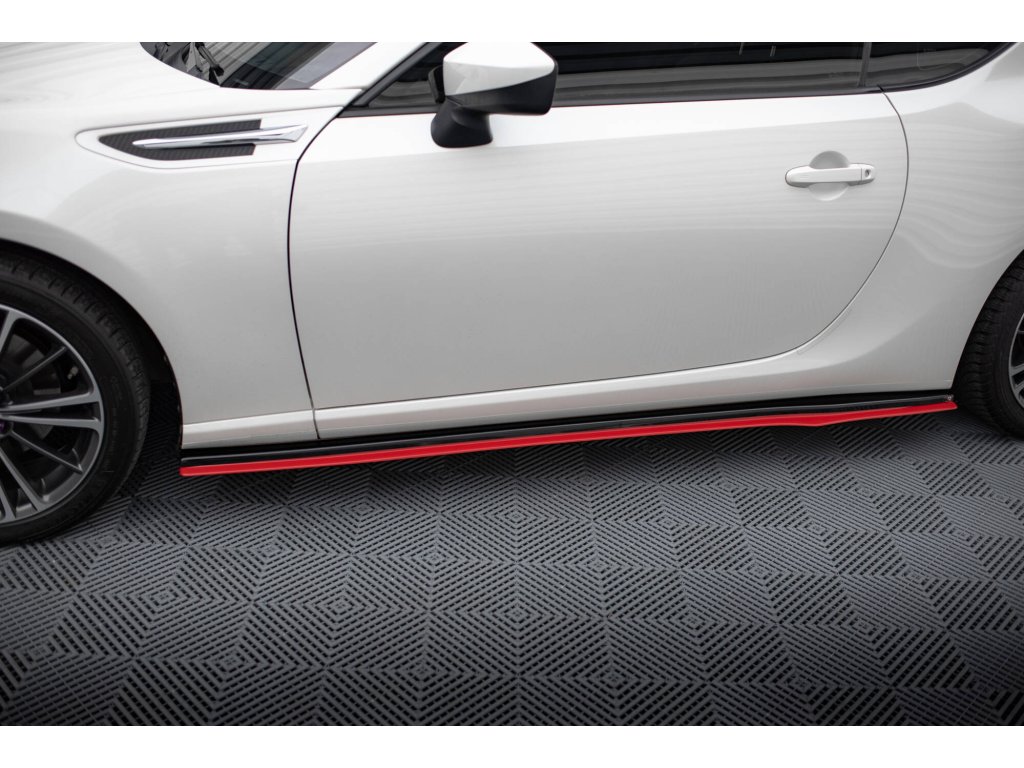 Maxton Design difuzory pod boční prahy ver.2 pro Subaru BRZ Mk1, Mk1 Facelift, černý lesklý plast ABS, s červenou linkou