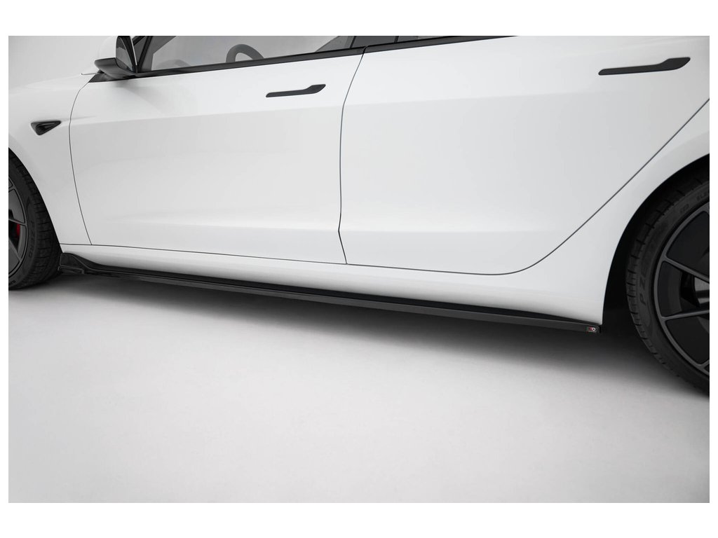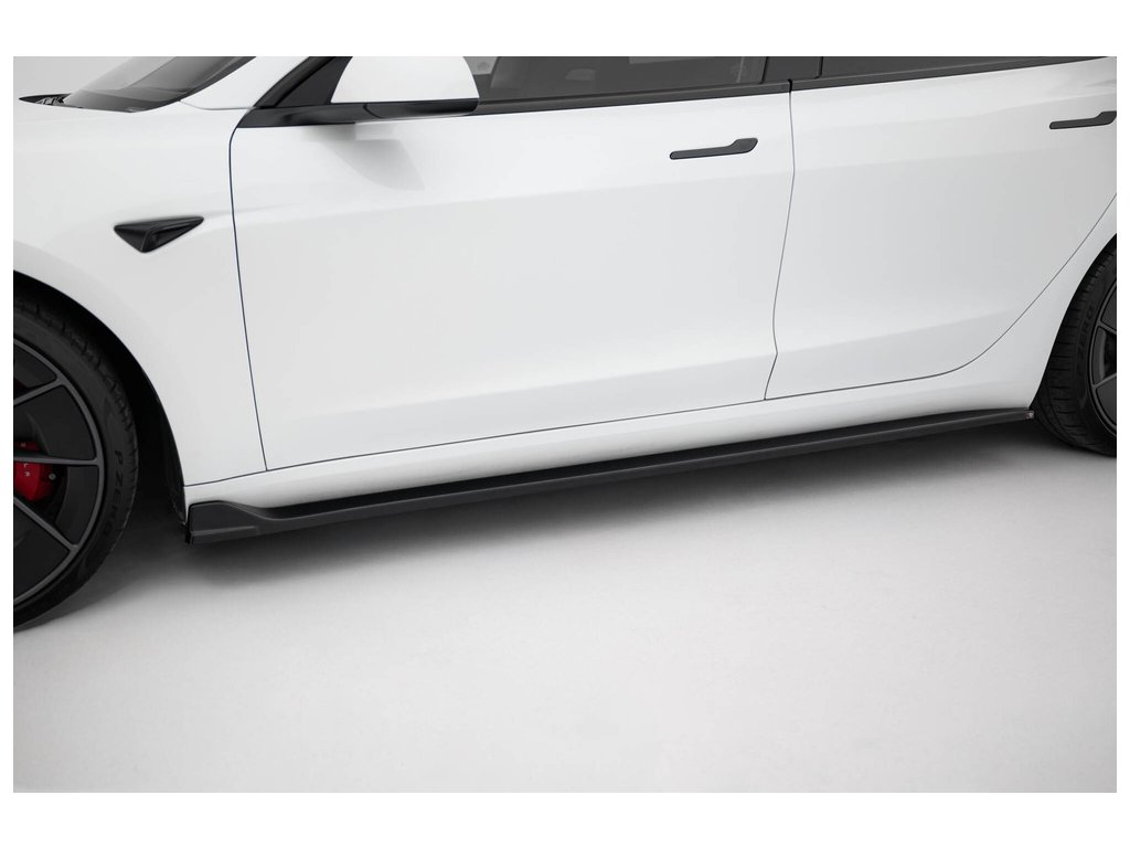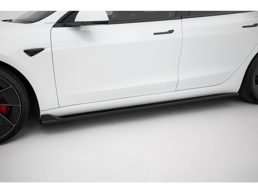 Maxton Design difuzory pod boční prahy ver.2 pro vozidlo Tesla Model 3 Mk1 . Povrchová úprava spoileru černý lesklý plast ABS.