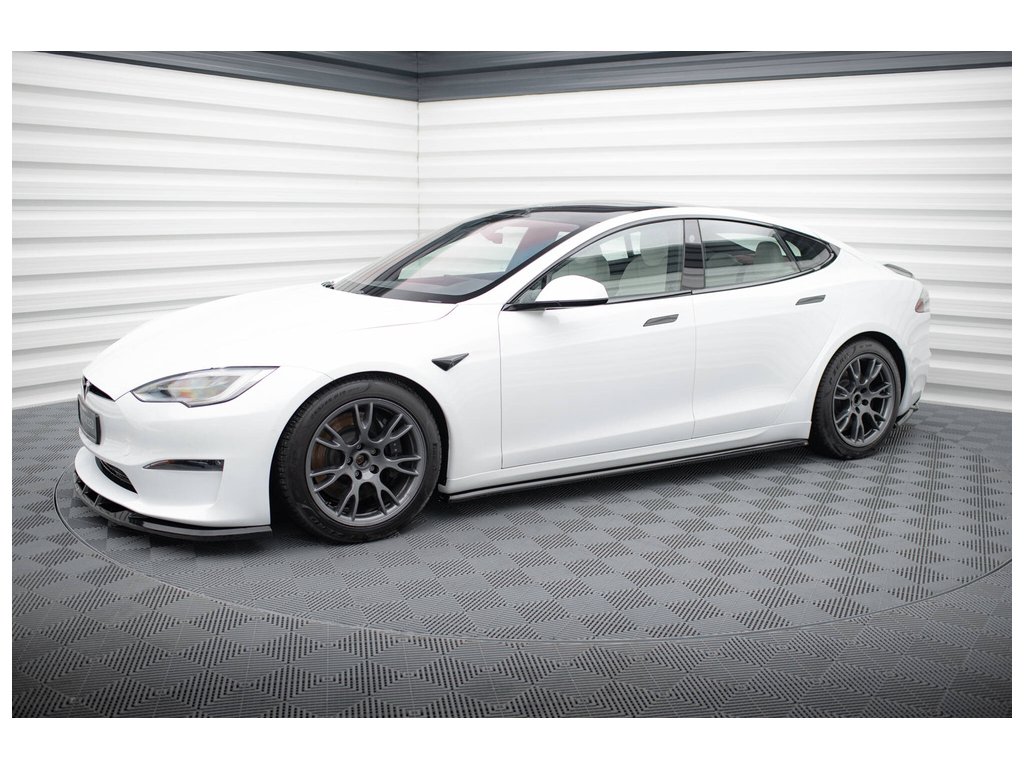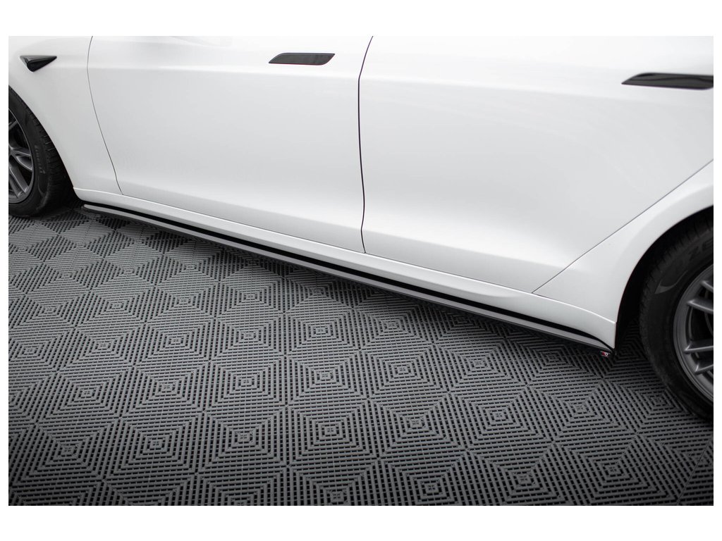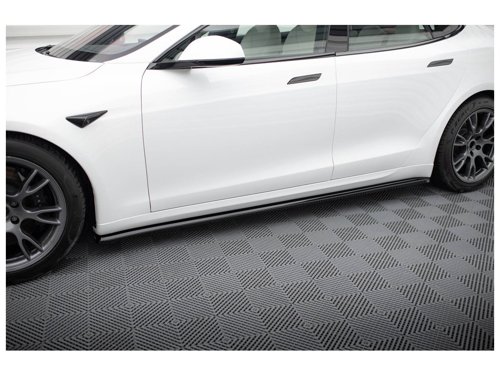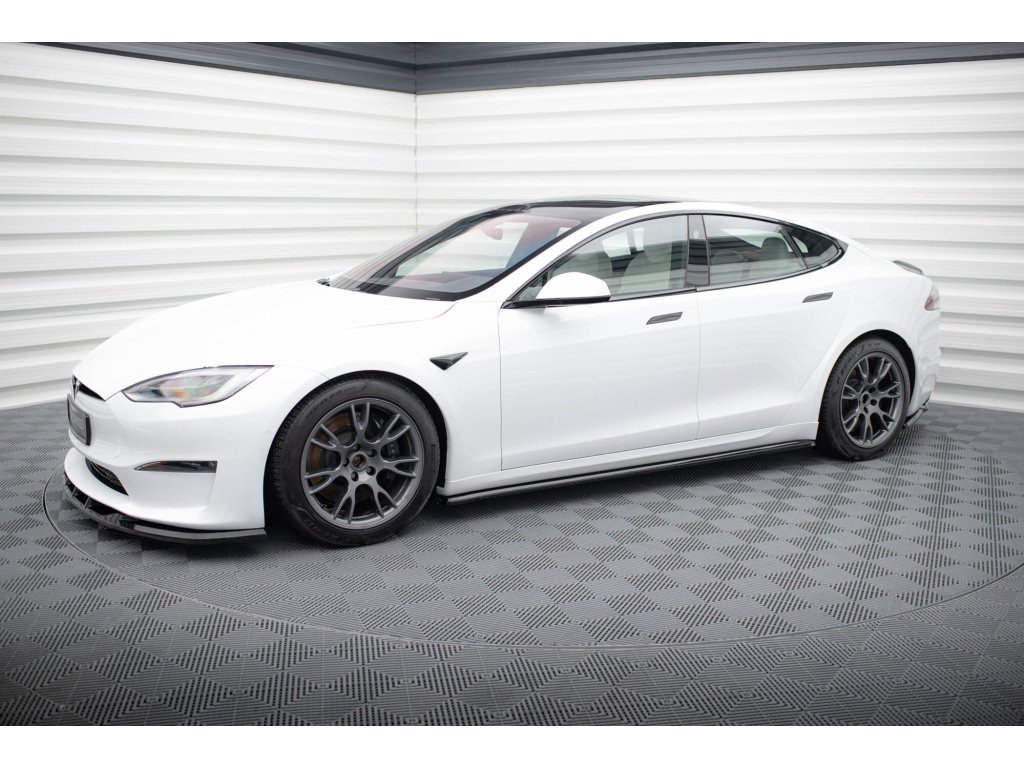 Maxton Design difuzory pod boční prahy ver.2 pro vozidlo Tesla Model S Plaid Mk1 Facelift . Povrchová úprava spoileru černý lesklý plast ABS.