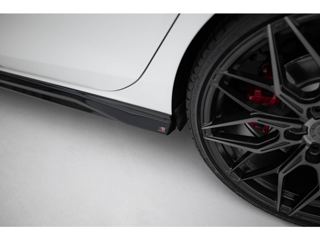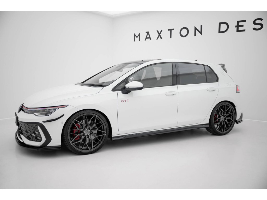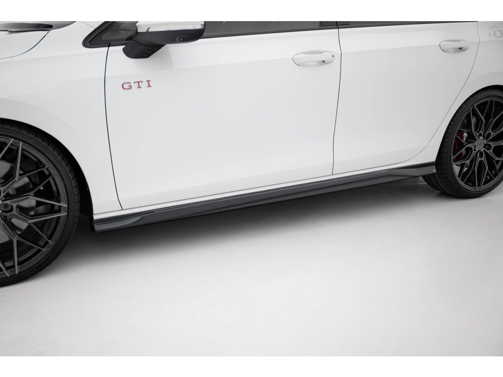 Maxton Design difuzory pod boční prahy ver.3 pro vozidlo Volkswagen Golf GTI Mk8 . Povrchová úprava spoileru černý lesklý plast ABS.