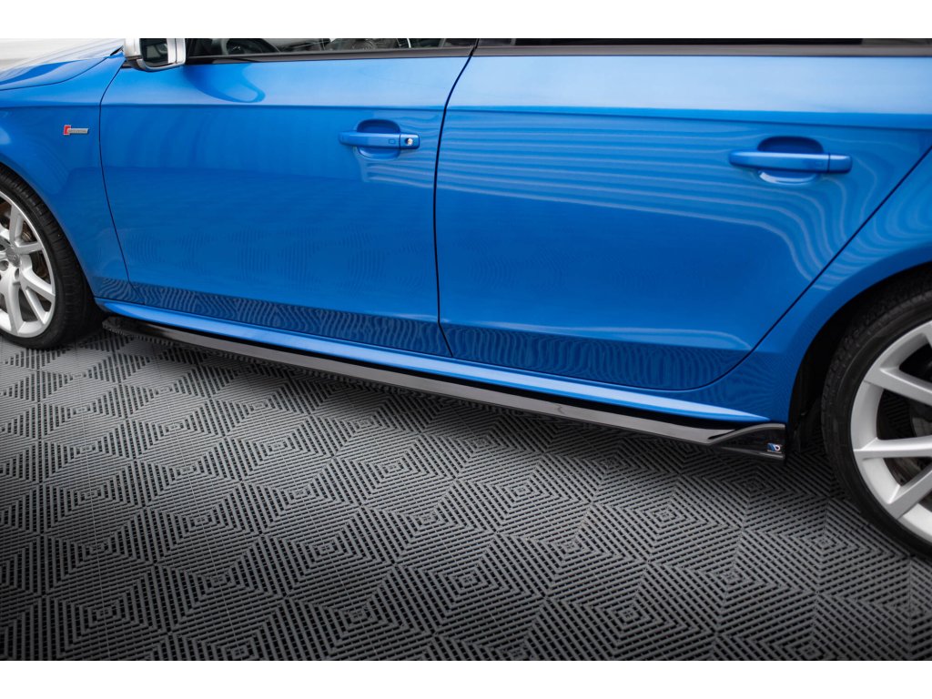 Maxton Design difuzory pod boční prahy ver.4 pro vozidlo Audi A4 B8, B8 Competition Facelift, B8 FL . Povrchová úprava spoileru černý lesklý plast ABS.