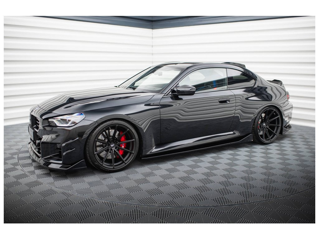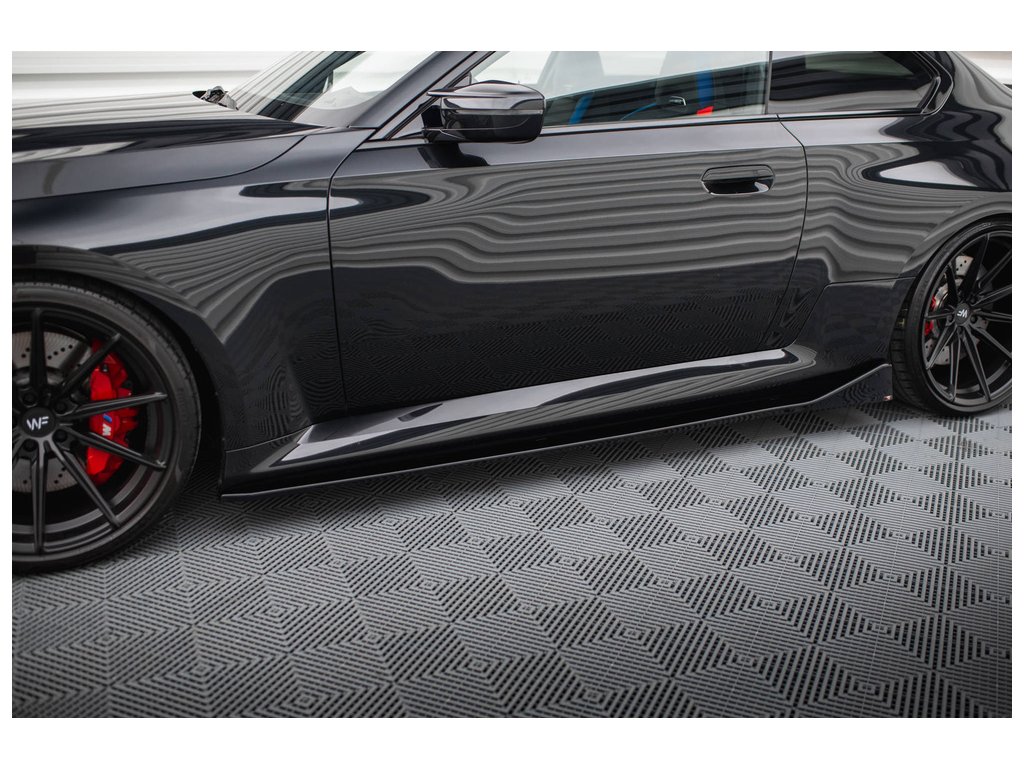 Maxton Design difuzory pod boční prahy ver.4 pro vozidlo BMW M2 G87 . Povrchová úprava spoileru černý lesklý plast ABS.