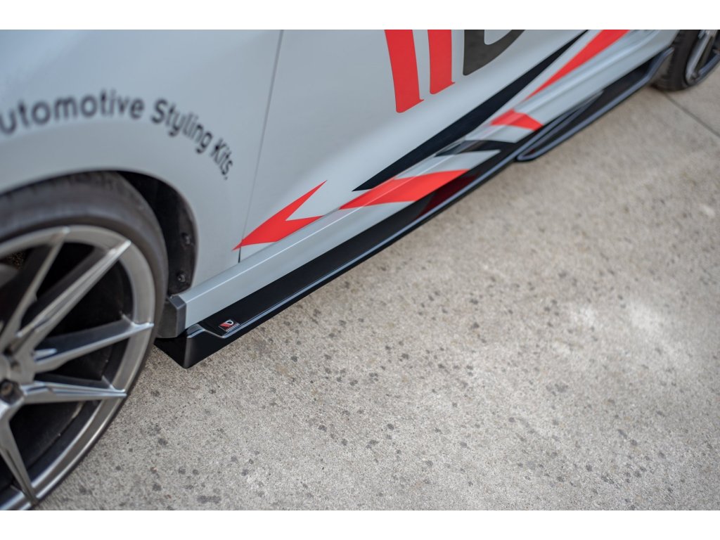 Maxton Design difuzory pod boční prahy ver.4 pro vozidlo Ford Fiesta ST Mk8 . Povrchová úprava spoileru carbon-Look.