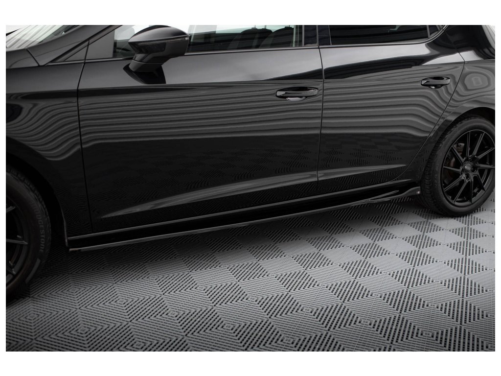 Maxton Design difuzory pod boční prahy ver.4 pro vozidlo Seat Leon Cupra Mk3 Facelift. Povrchová úprava spoileru černý lesklý plast ABS.
