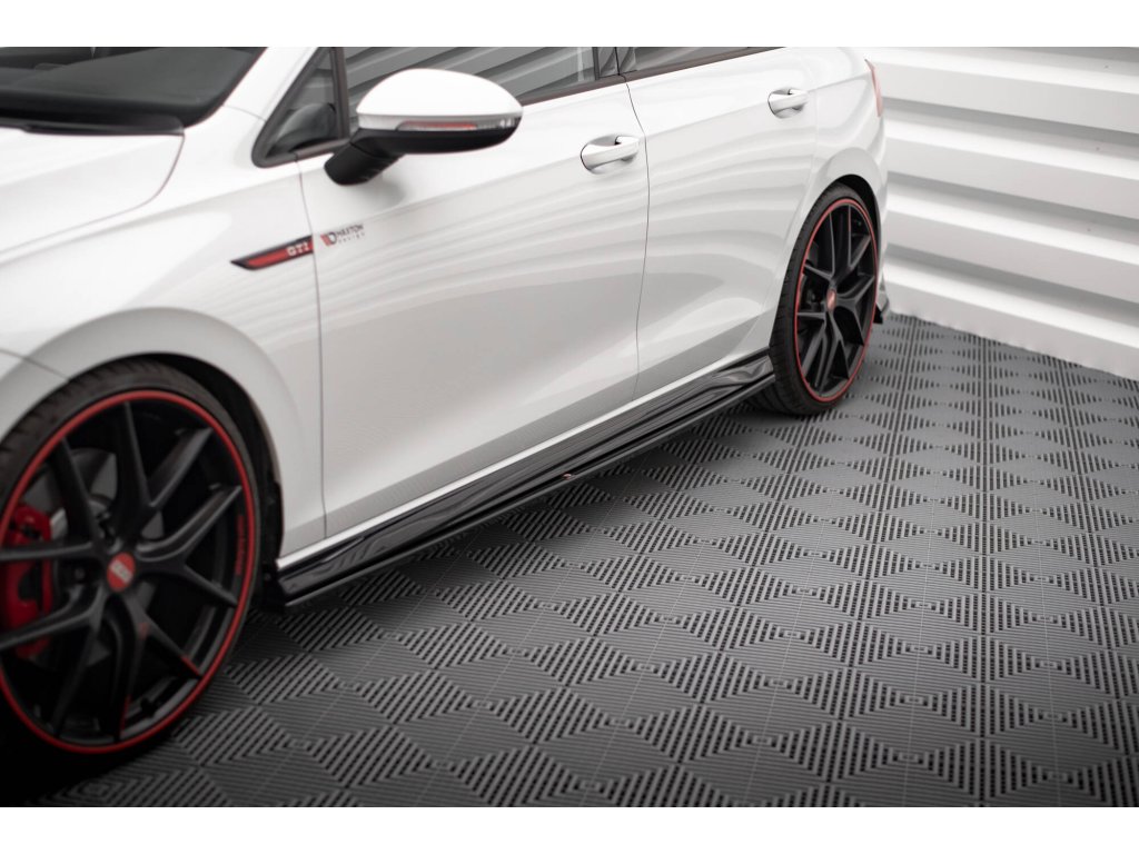 Maxton Design difuzory pod boční prahy ver.4 pro vozidlo Volkswagen Golf GTI Mk8, Mk8 Facelift . Povrchová úprava spoileru černý lesklý plast ABS.