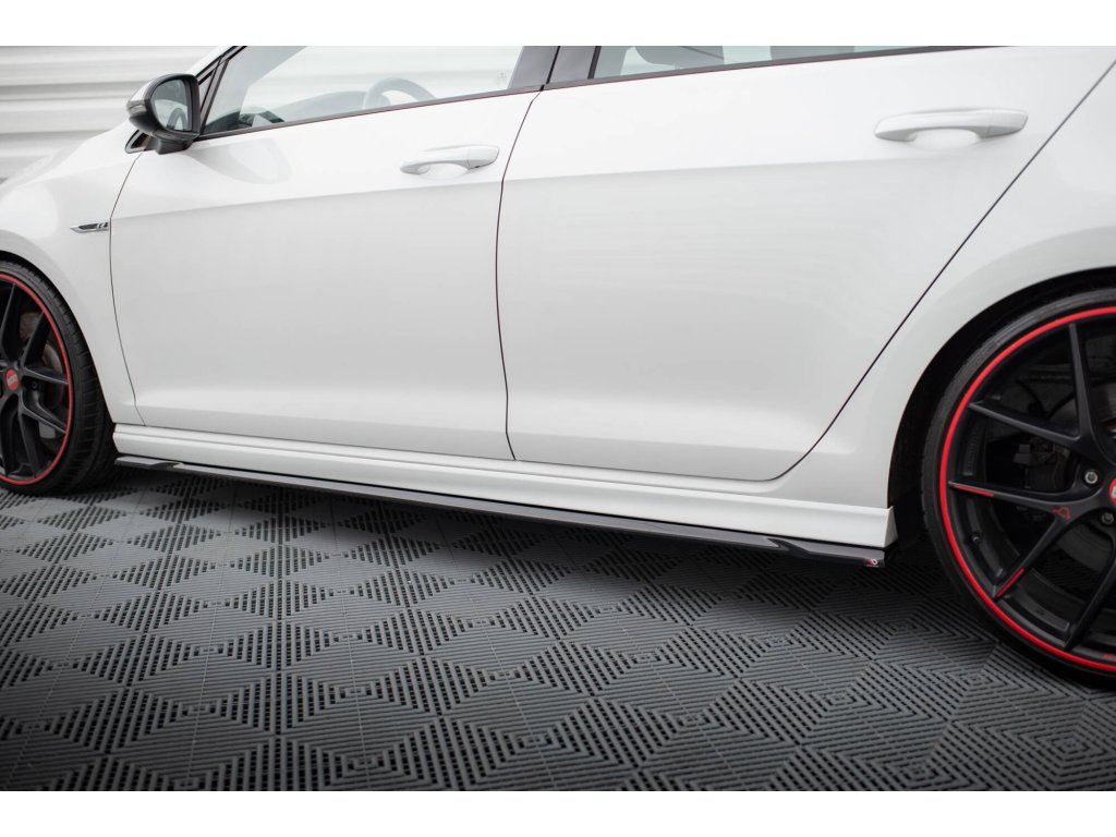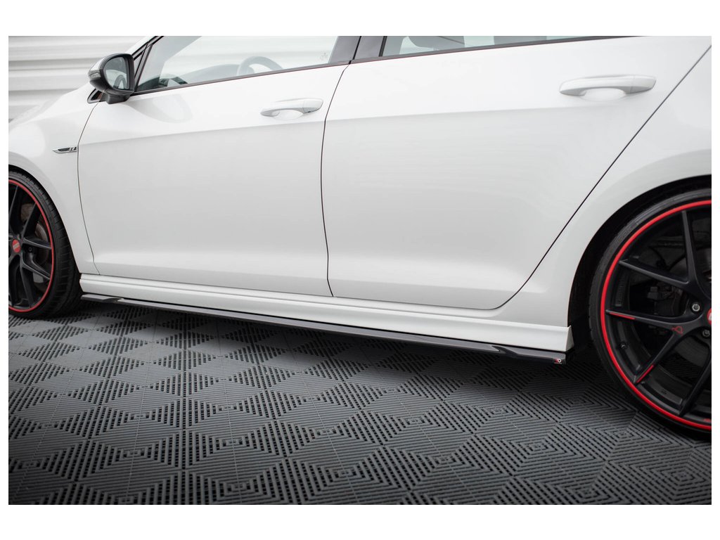 Maxton Design difuzory pod boční prahy ver.4 pro vozidlo Volkswagen Golf R Mk7 . Povrchová úprava spoileru černý lesklý plast ABS.