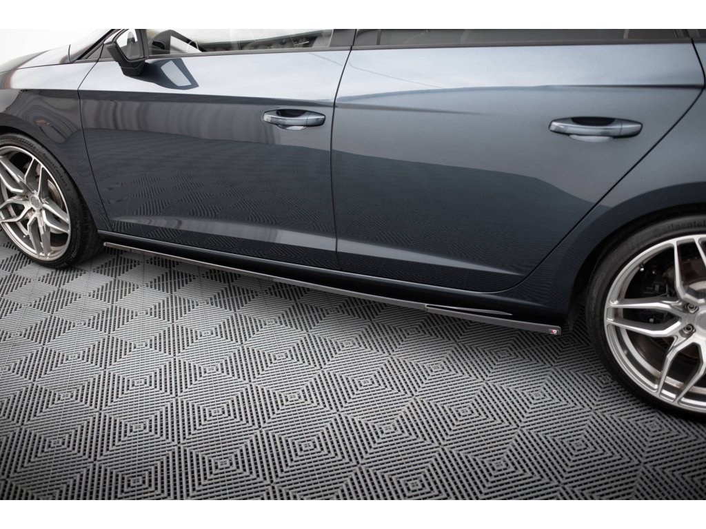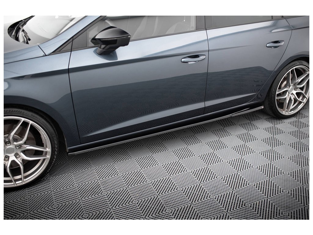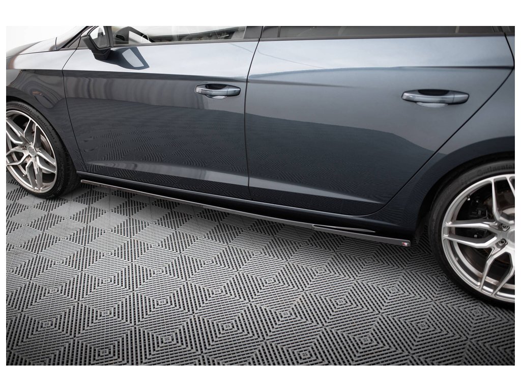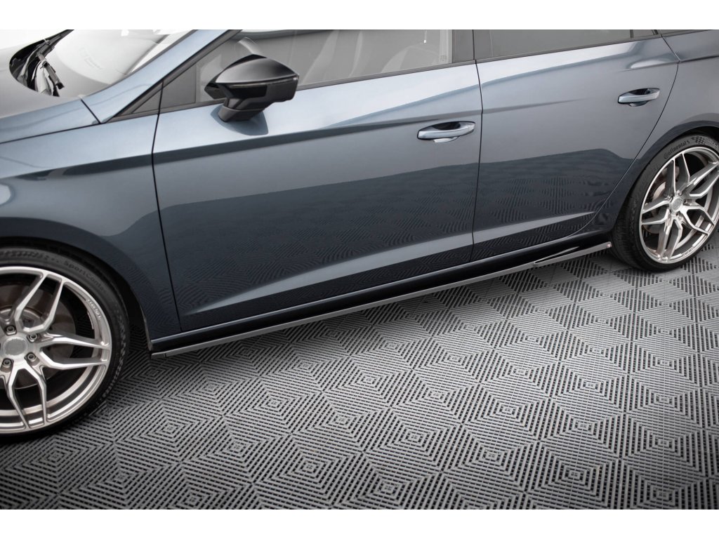 Maxton Design difuzory pod boční prahy ver.5 pro vozidlo Seat Leon Cupra Mk3 Facelift. Povrchová úprava spoileru černý lesklý plast ABS.