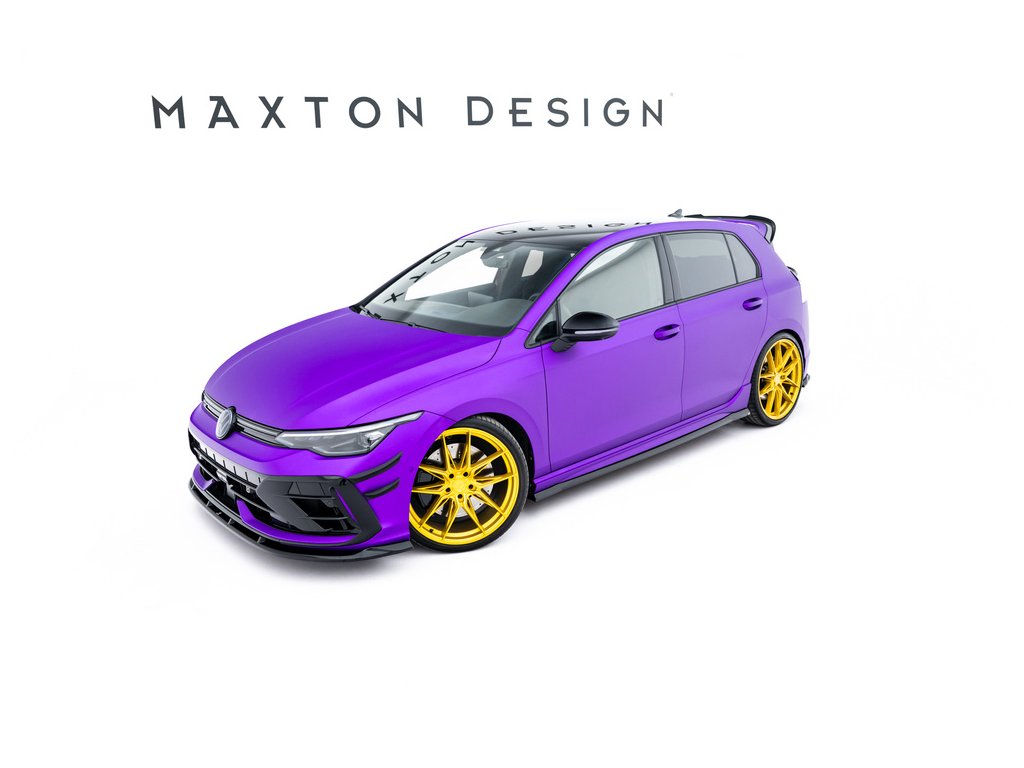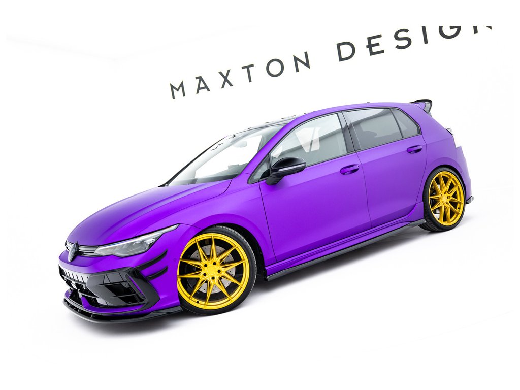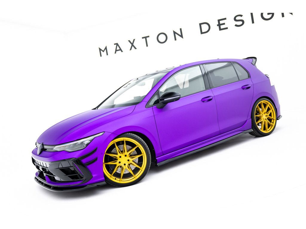 Maxton Design difuzory pod boční prahy ver.5 pro vozidlo Volkswagen Golf R Mk8, Mk8 Facelift . Povrchová úprava spoileru černý lesklý plast ABS.