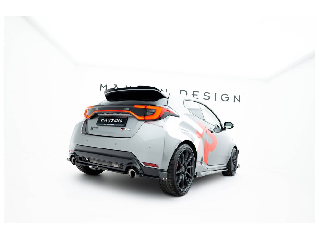 Maxton Design difuzory pod zadní nárazník s křidélky pro vozidlo Toyota GR Yaris Mk4 Facelift . Povrchová úprava spoileru černý lesklý plast ABS.