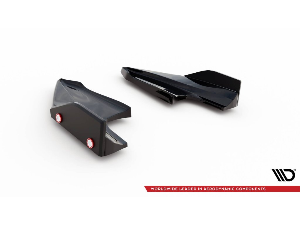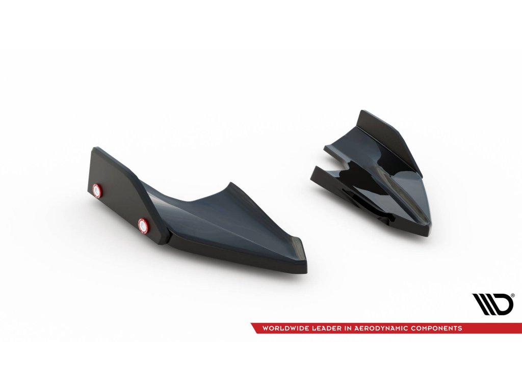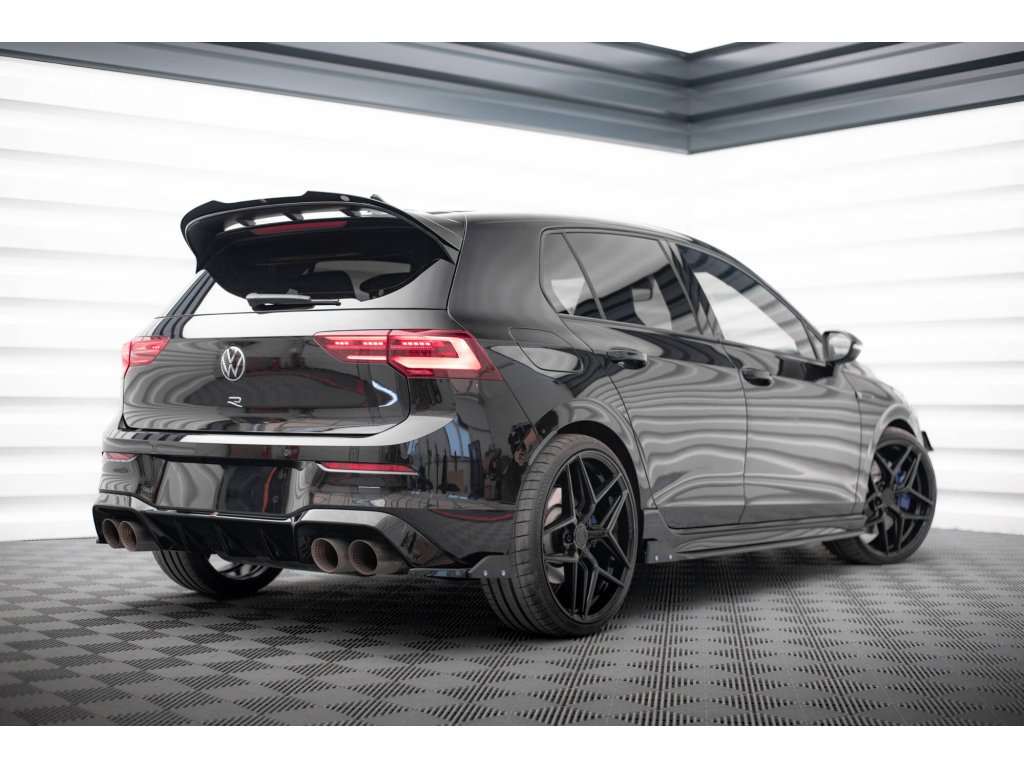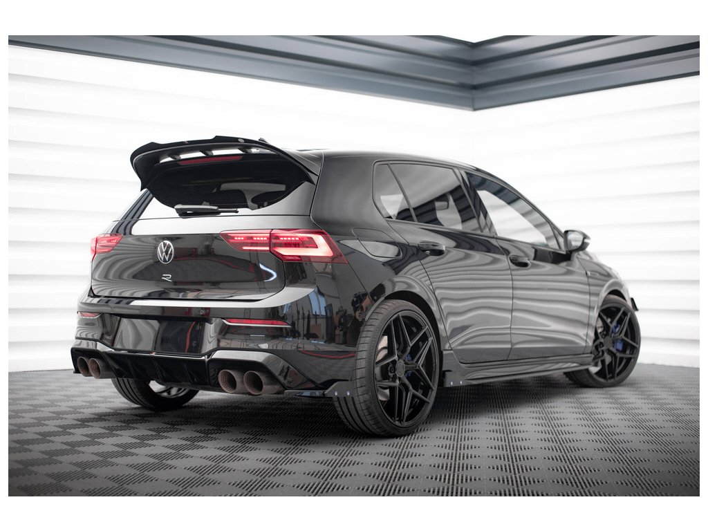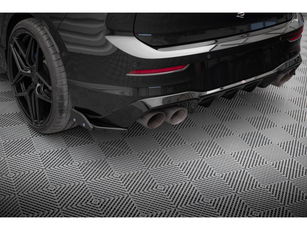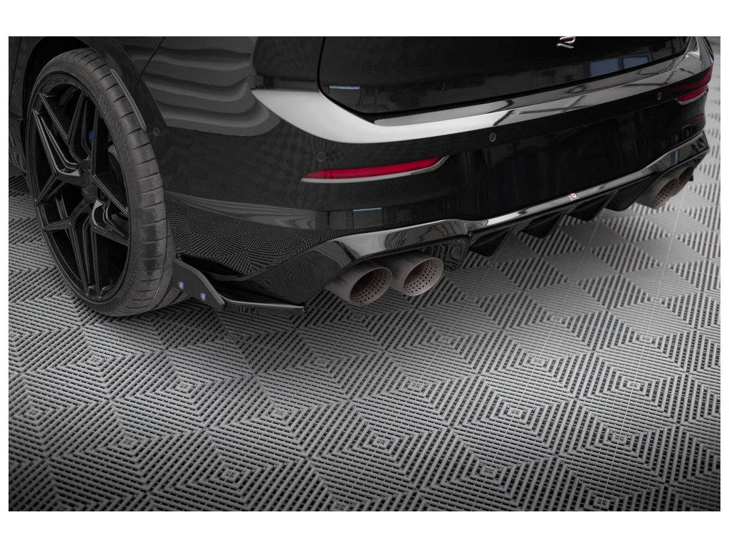 Maxton Design difuzory pod zadní nárazník s křidélky ver. 5 pro vozidlo Volkswagen Golf R Mk8 . Povrchová úprava spoileru černý lesklý plast ABS.