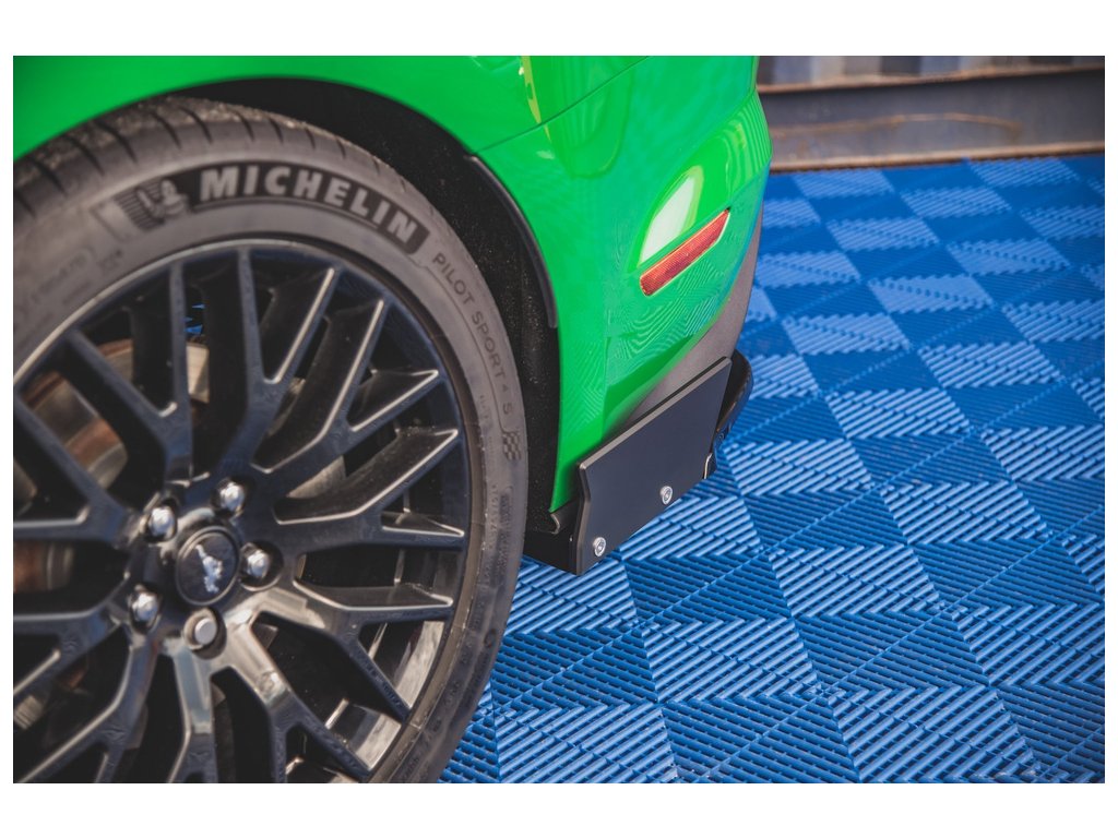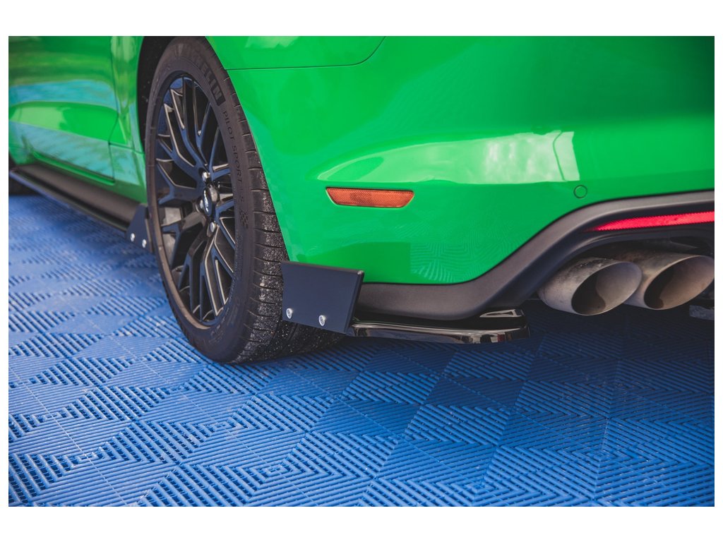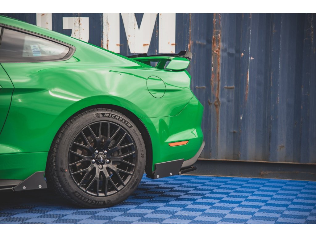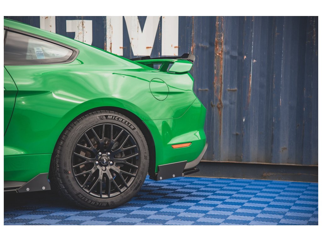 Boční spoilery zadního nárazníku + ploutvičky V.1 Ford Mustang GT Mk6 Facelift, povrchová úprava černý lesklý plast ABS.