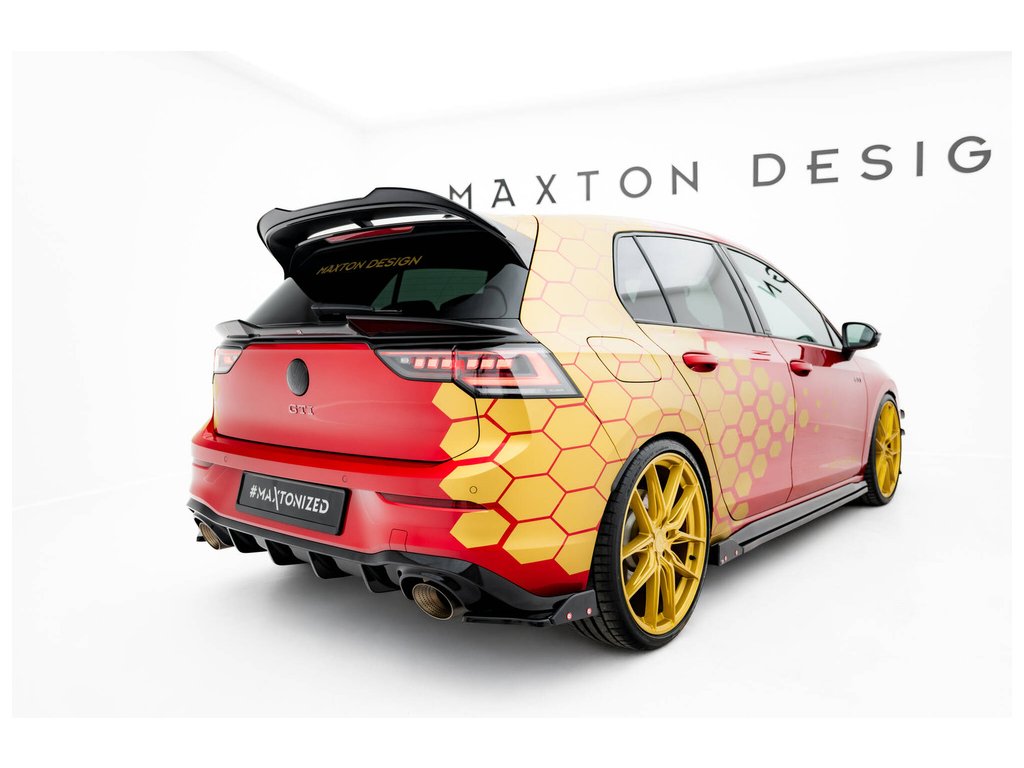 Maxton Design difuzory pod zadní nárazník s křidélky ver.1 pro vozidlo Volkswagen Golf GTI Mk8 . Povrchová úprava spoileru černý lesklý plast ABS.