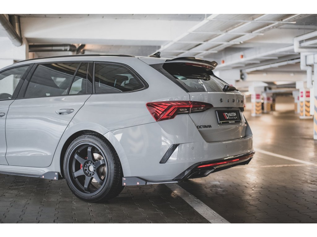 Maxton Design difuzory pod zadní nárazník s křidélky ver.2 pro vozidlo Škoda Octavia RS Mk4 . Povrchová úprava spoileru carbon-Look.