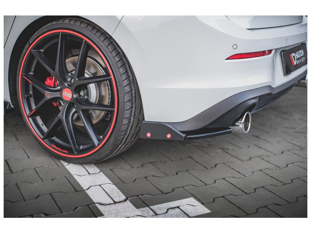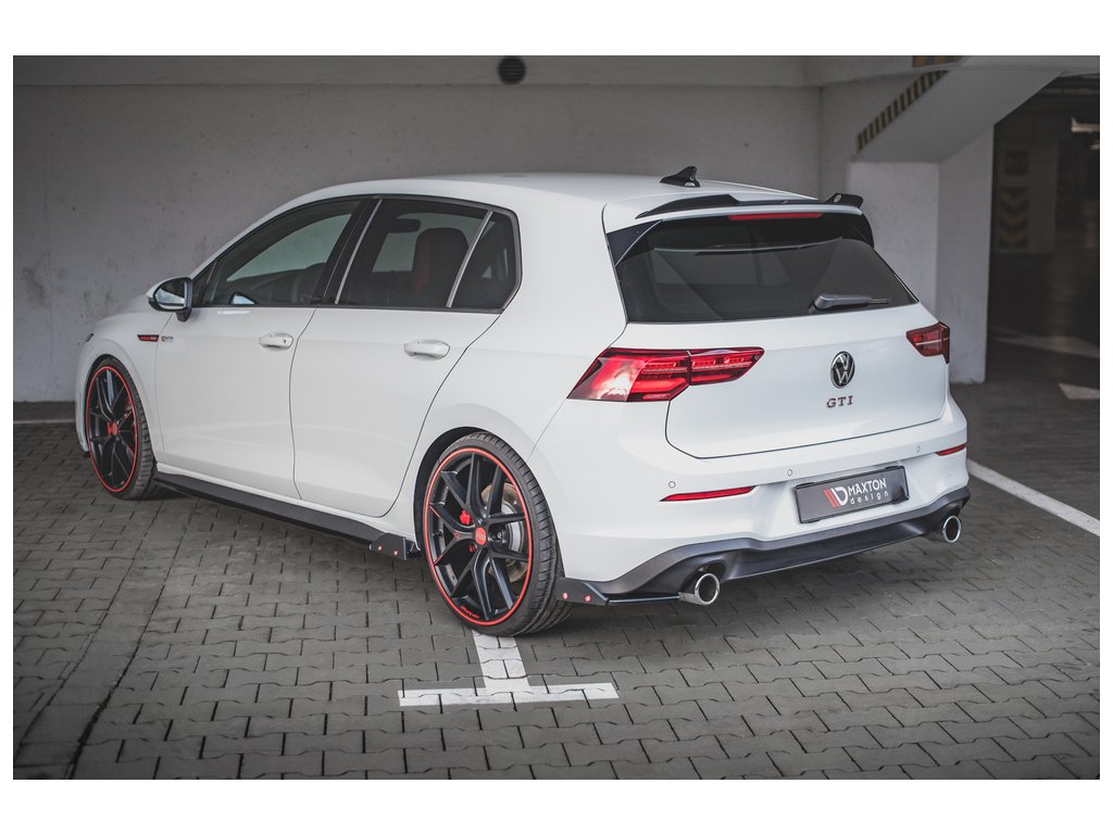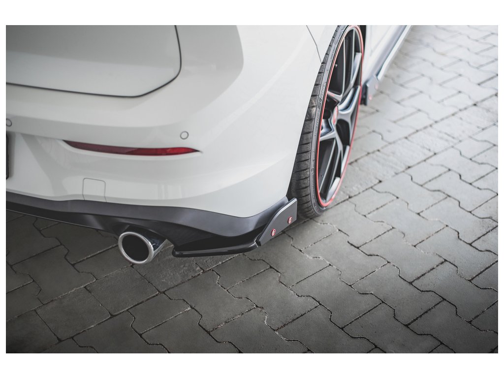 Maxton Design difuzory pod zadní nárazník s křidélky ver.2 pro vozidlo Volkswagen Golf GTI Mk8 . Povrchová úprava spoileru černý lesklý plast ABS.