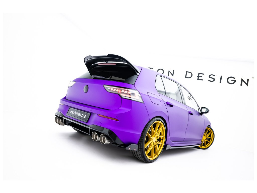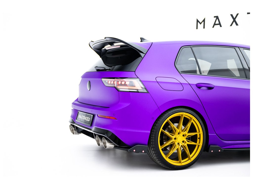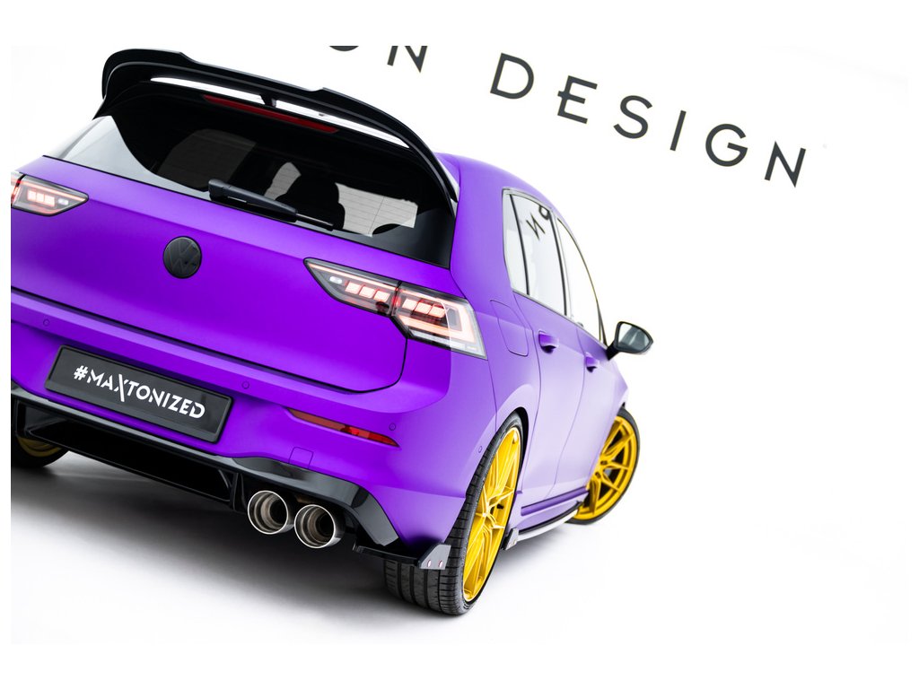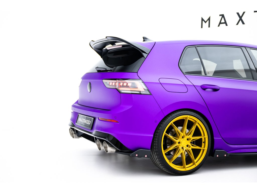 Maxton Design difuzory pod zadní nárazník s křidélky ver.2 pro vozidlo Volkswagen Golf R Mk8 . Povrchová úprava spoileru černý lesklý plast ABS.