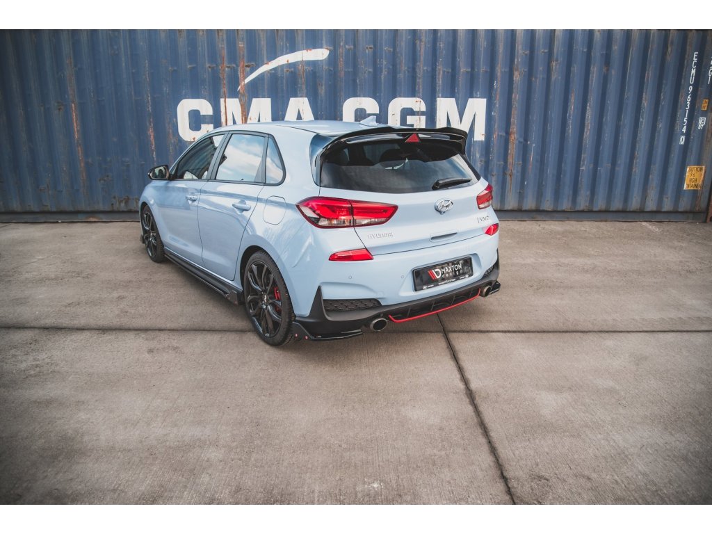 Boční spoilery zadního nárazníku + ploutvičky V.6 Hyundai I30 N Mk3 Hatchback, povrchová úprava černý lesklý plast ABS.