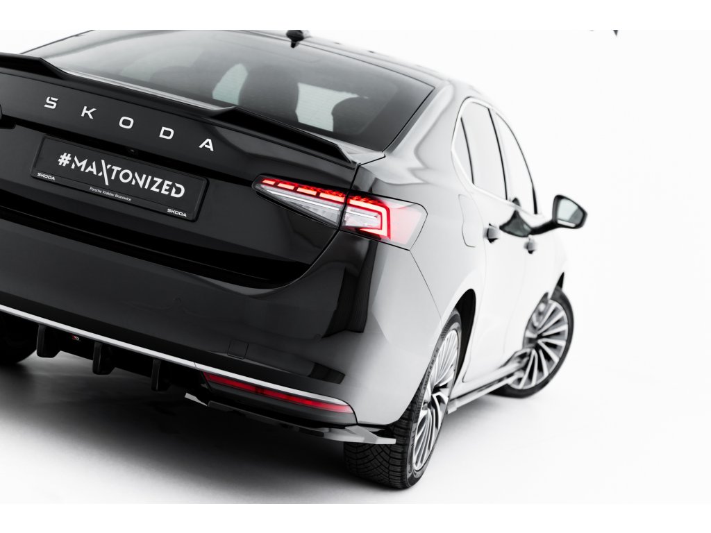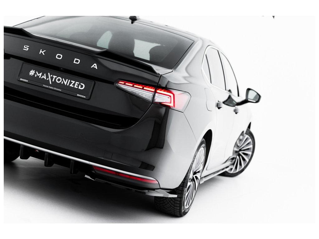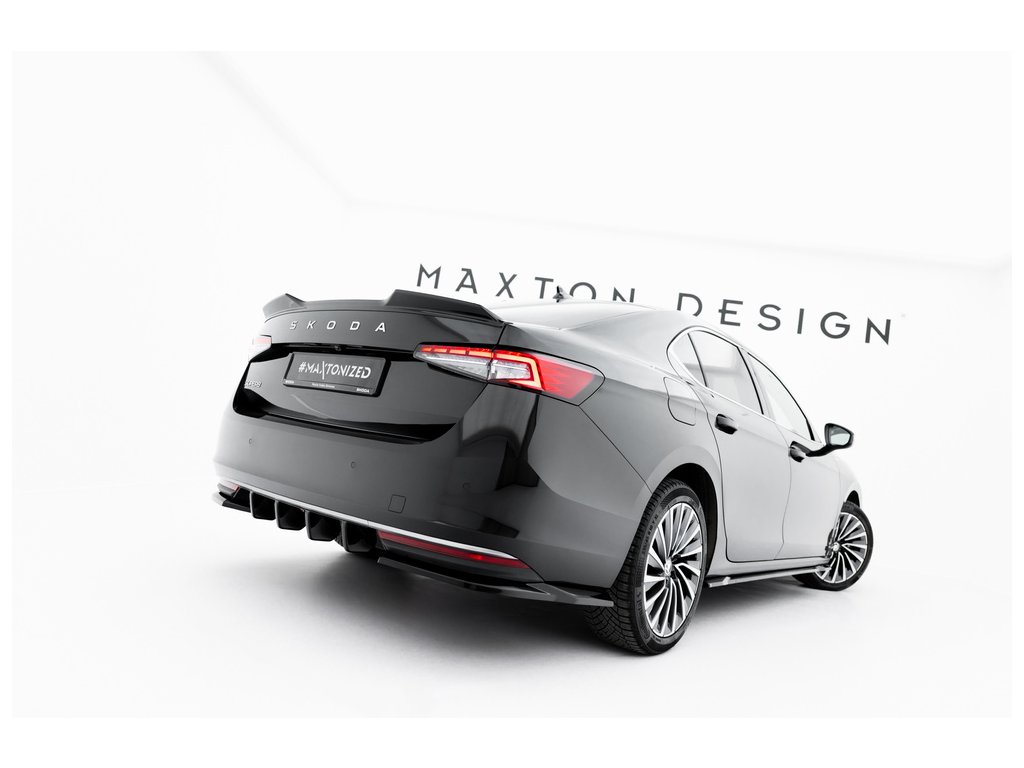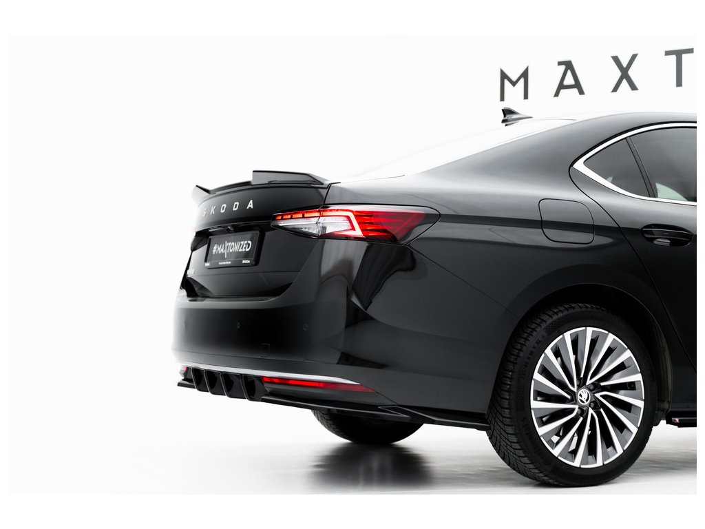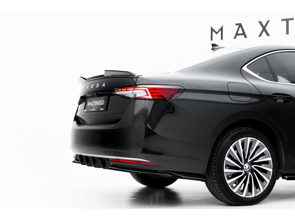 Maxton Design difuzory pod zadní nárazník ver.1 pro vozidlo Škoda Superb Mk4 . Povrchová úprava spoileru černý lesklý plast ABS.