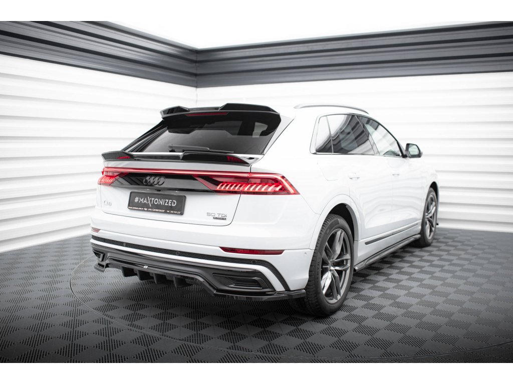 Maxton Design horní prodloužení spoileru 3d pro vozidlo Audi Q8 Mk 1 . Povrchová úprava spoileru černý lesklý plast ABS.