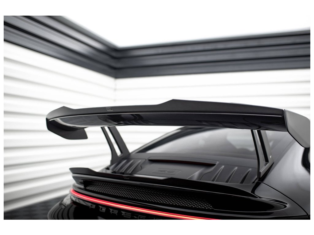 Maxton Design horní prodloužení spoileru pro vozidlo Porsche 911 992 GT3 . Povrchová úprava spoileru černý lesklý plast ABS.