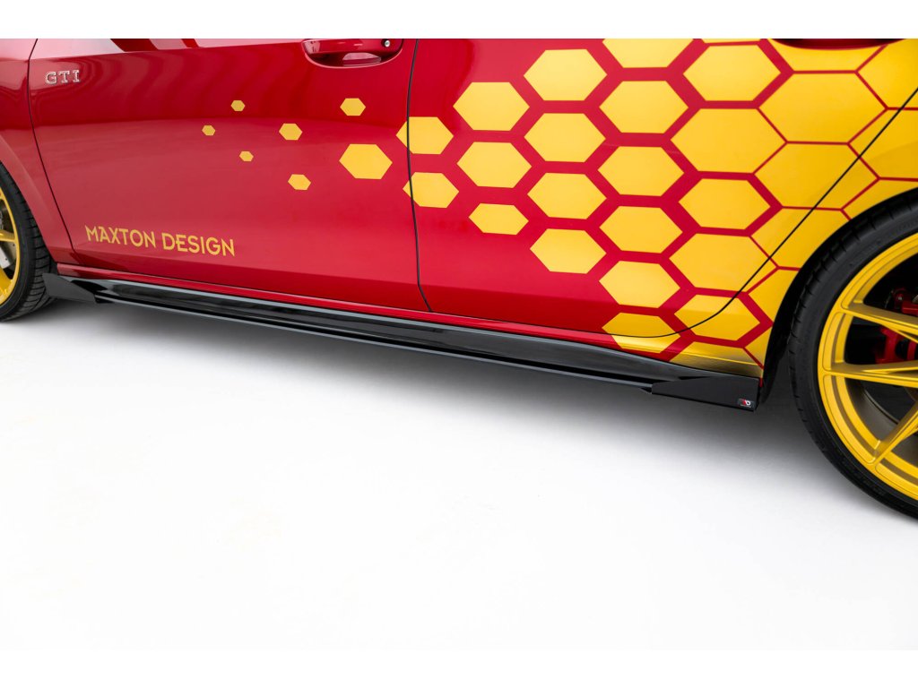 Maxton Design křidélka bočních difuzorů pro vozidlo Volkswagen Golf GTI Mk8, Mk8 Facelift . Povrchová úprava spoileru černý lesklý plast ABS.