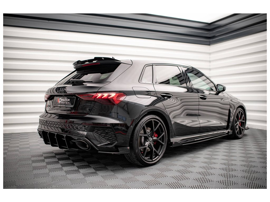 Maxton Design křidélka bočních difuzorů zad. nárazníku pro vozidlo Audi RS3 8Y . Povrchová úprava spoileru černý lesklý plast ABS.