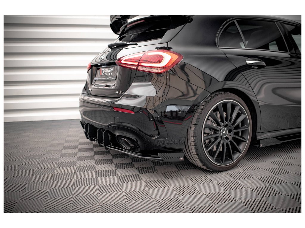 Maxton Design křidélka bočních difuzorů zad. nárazníku pro Mercedes třída A W177 A35 AMG Aero, černý lesklý plast ABS, hatchback
