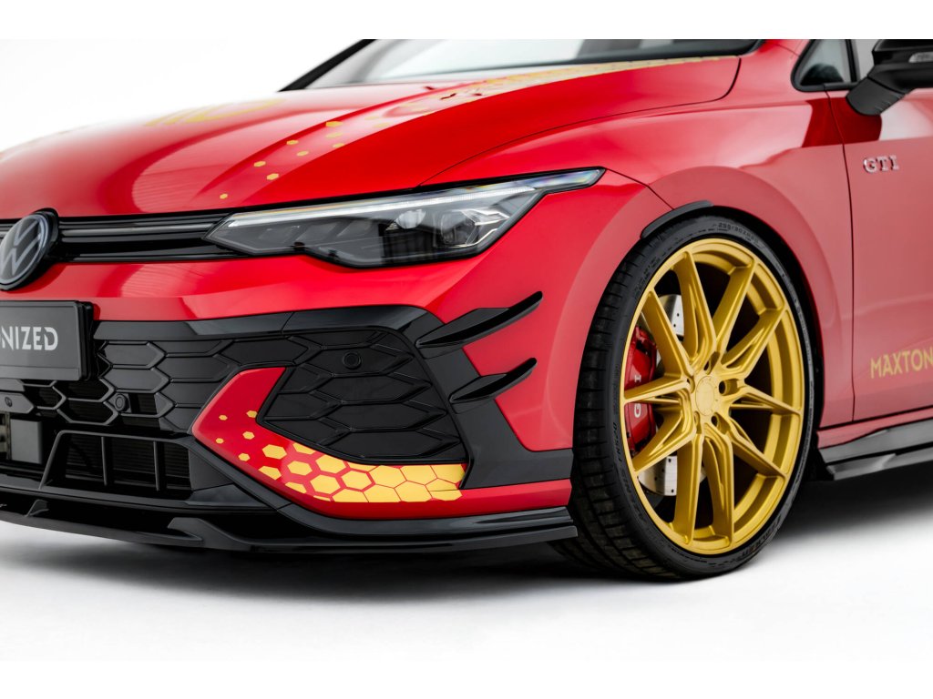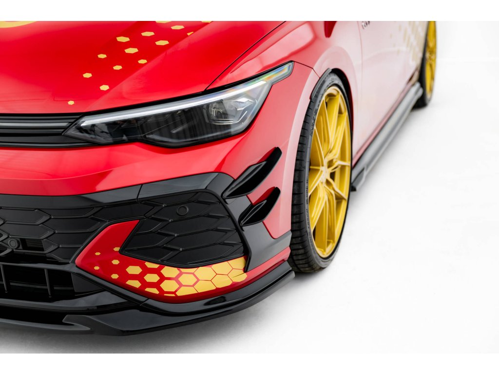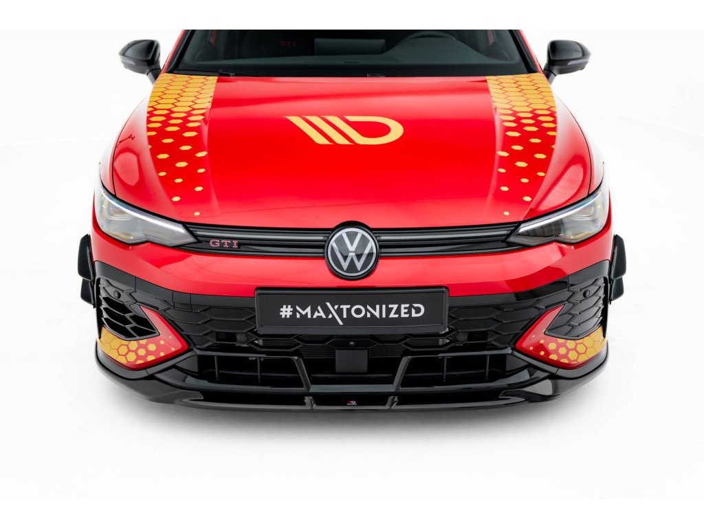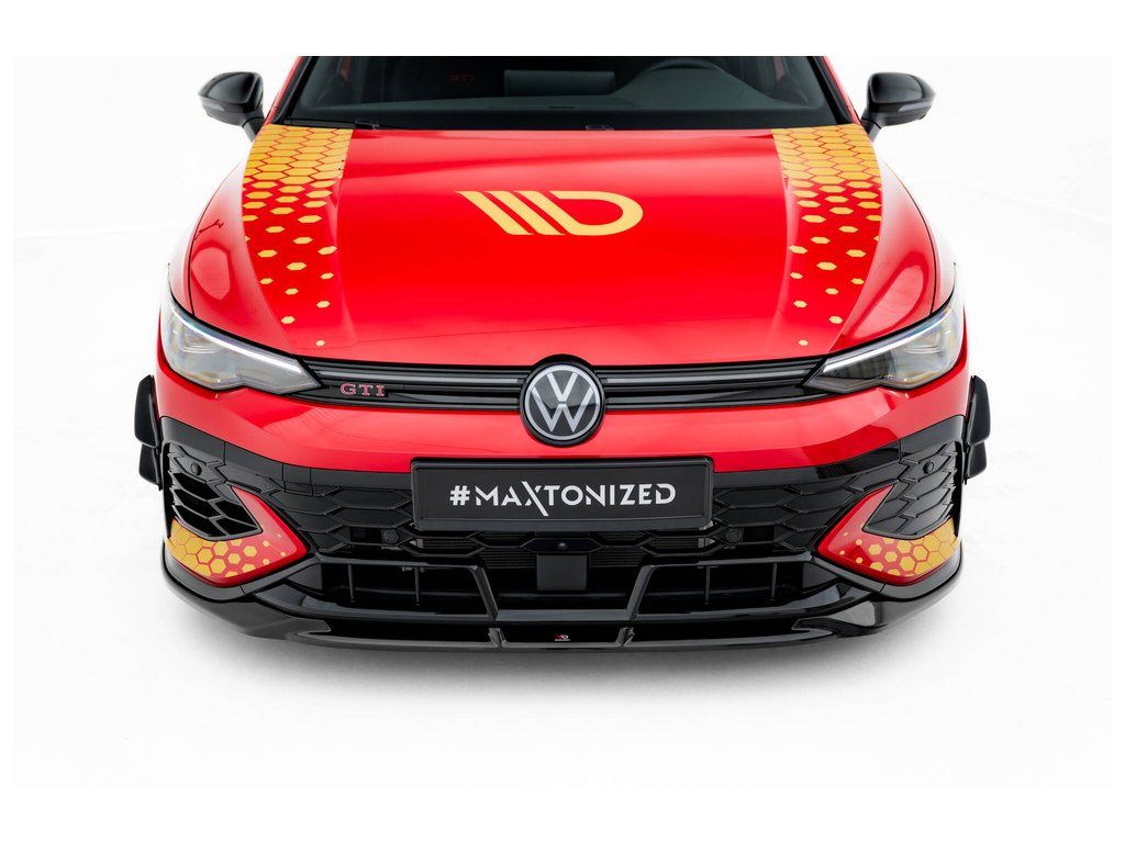 Maxton Design přítlačná křidélka předního nárazníku pro vozidlo Volkswagen Golf GTI Mk8 Facelift . Povrchová úprava spoileru plast ABS bez povrchové úpravy.
