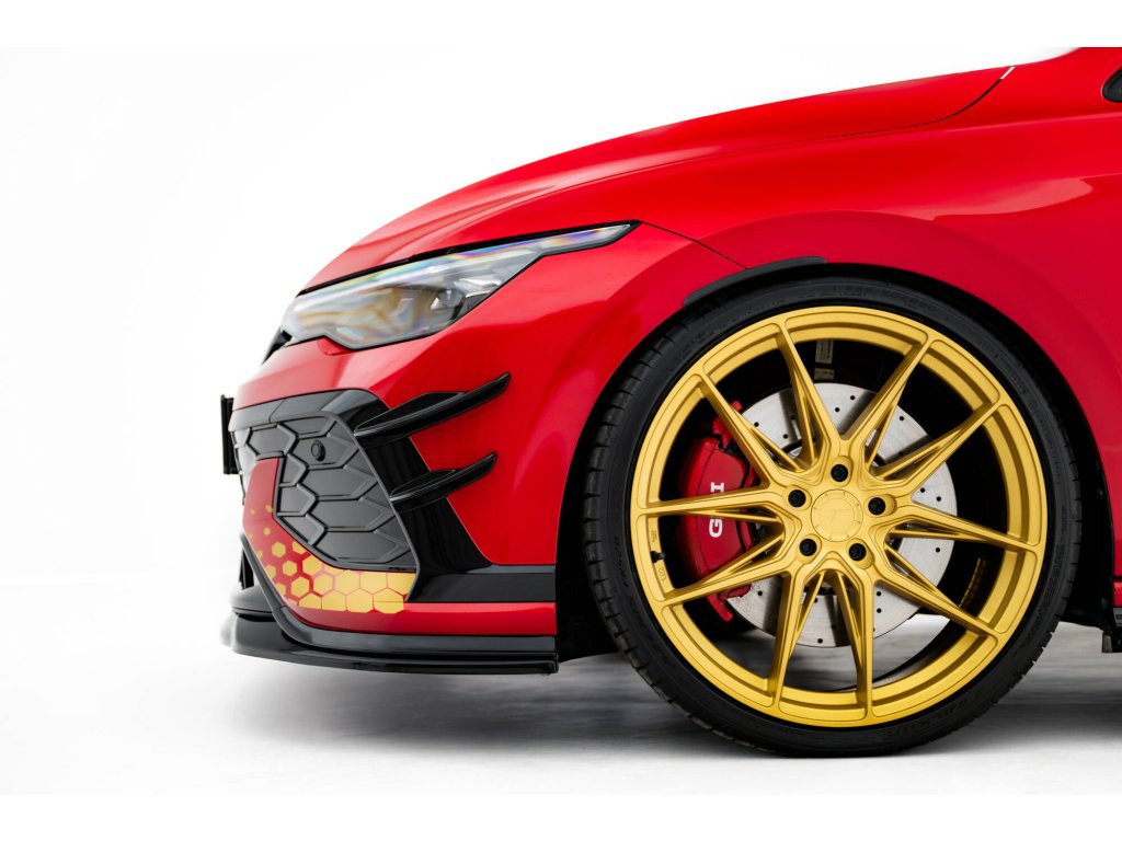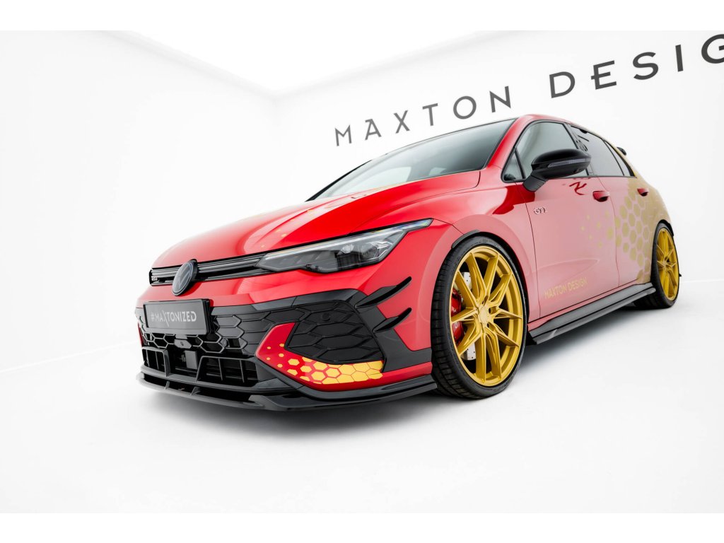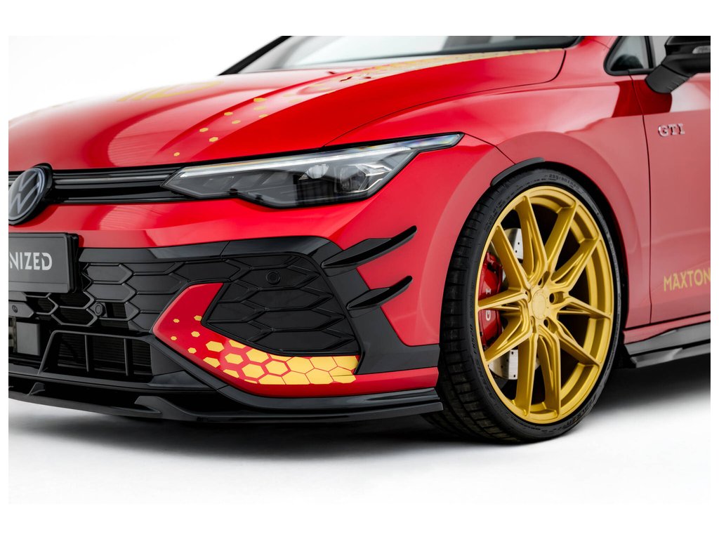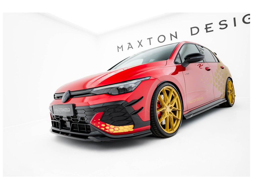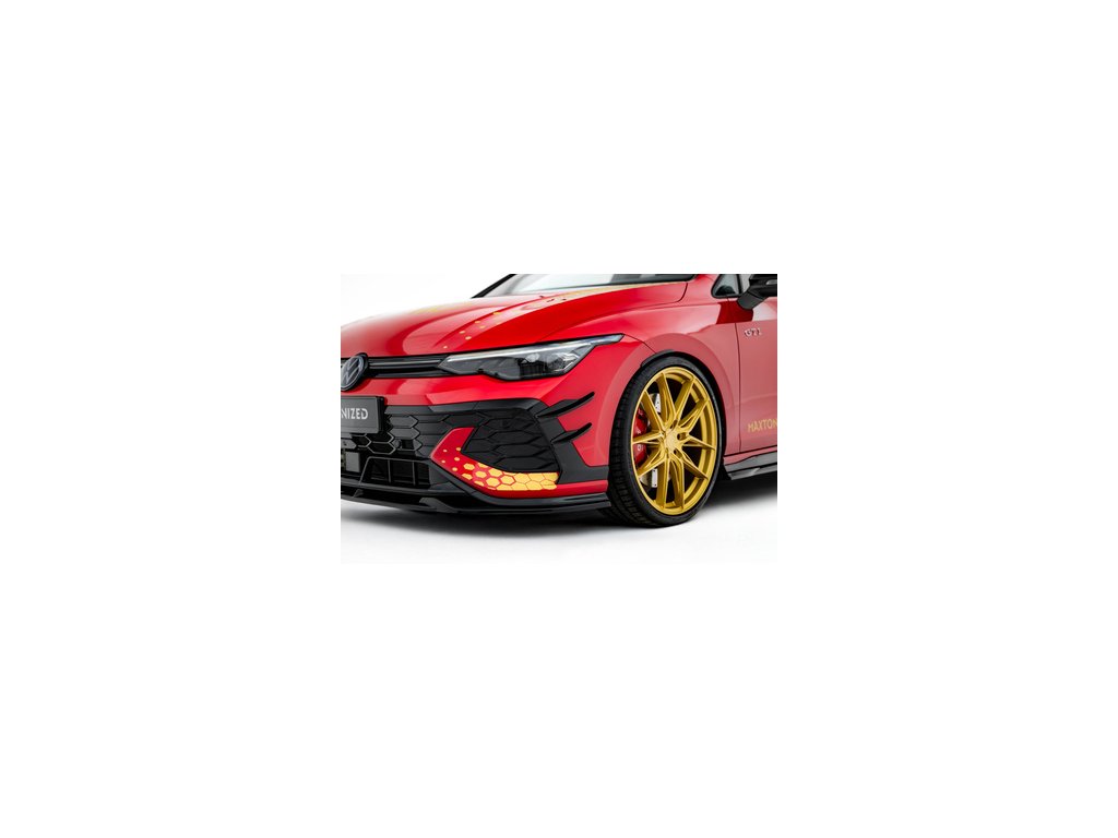 Maxton Design přítlačná křidélka předního nárazníku pro vozidlo Volkswagen Golf GTI Mk8 Facelift . Povrchová úprava spoileru plast ABS bez povrchové úpravy.