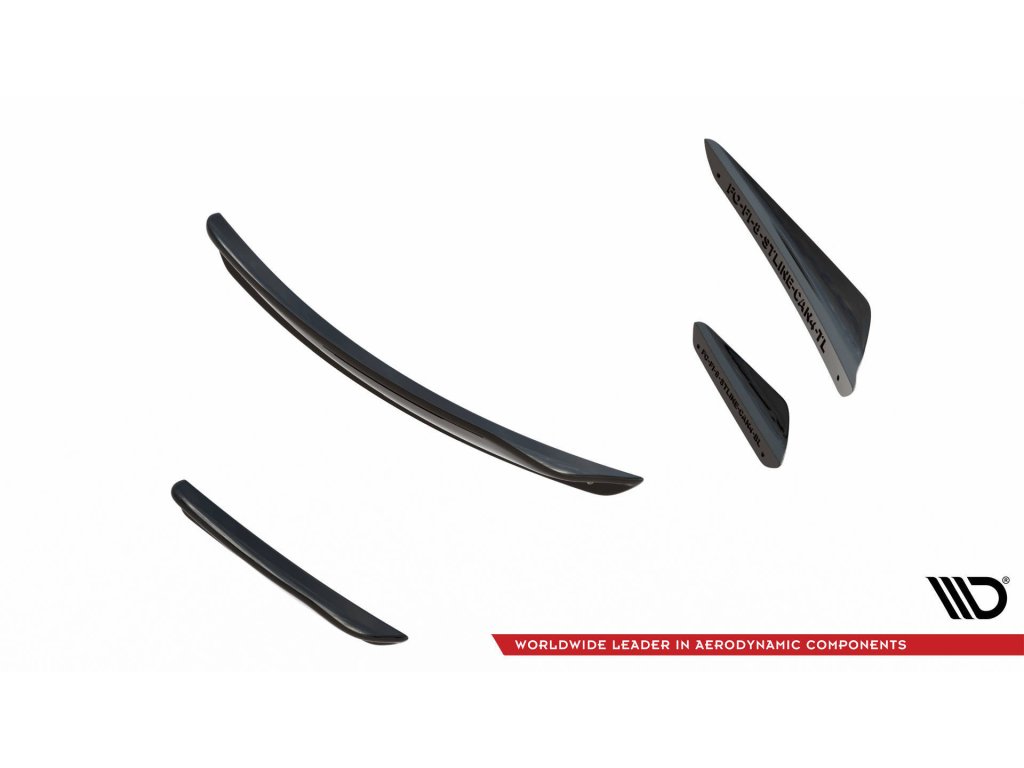 Maxton Design přítlačná křidélka předního nárazníku ver.3 pro vozidlo Ford Fiesta ST Mk8 . Povrchová úprava spoileru .